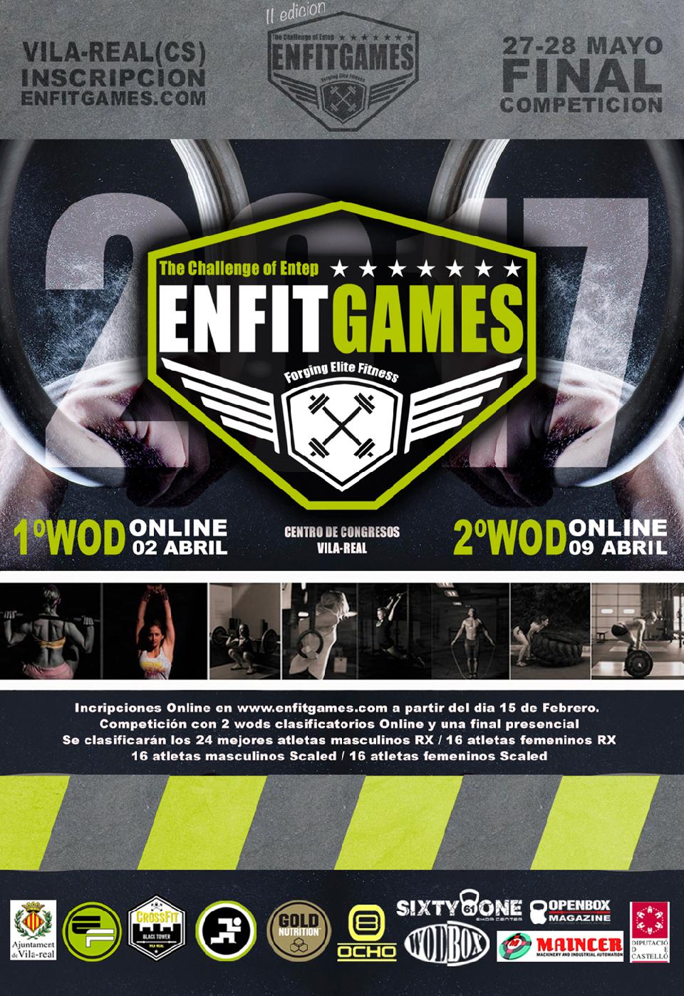 ENFITGAMES es una competición de aptitud funcional y espíritu comunitario. Aspirando a ser un evento en el que puedan participar todo tipo de atletas en su fase presencial y puedan disfrutar de sus wods clasificatorios, ya que el peso de los ejercicios y movimientos no será el factor que delimite al atleta y si su estado de forma.