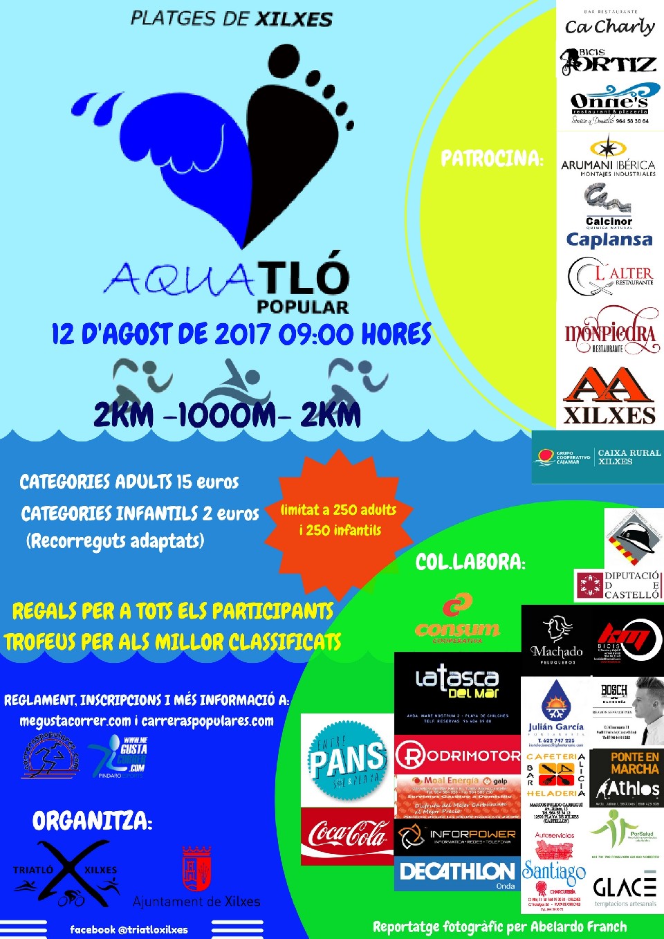 El CLUB TRIATLÓ XILXES con la colaboración del Ayuntamiento de Xilxes, organizan el Sábado 12 de Agosto de 2017, el I AQUATLÓ POPULAR PLATGES DE XILXES.