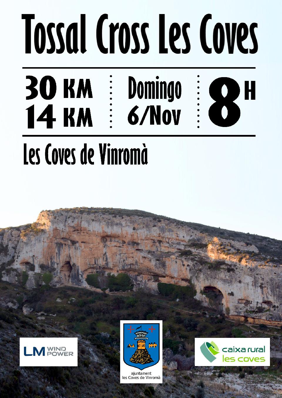 El I TOSSAL CROSS es un evento deportivo compuesto de dos carreras por montaña. Con salida y llegada en Les Coves de Vinromá se celebrará el próximo domingo día 6 de noviembre de 2016. Las competiciones discurren a través de pistas forestales y senderos locales del término municipal de Les Coves de Vinromá, por la zona del Tossal Cross y la Morería. En ambas pruebas solo podrán participar los corredores nacidos antes del 6 de noviembre de 2000, incluido (mayores de 16 años). Se entiende que las personas inscritas en ambas carreras participan de forma voluntaria, bajo su responsabilidad y que reúnen las condiciones de salud, tanto físicas como mentales, necesarias para la realización de estas actividades. Los menores de 16 años deberán aportar una autorización del padre / madre / tutor.
