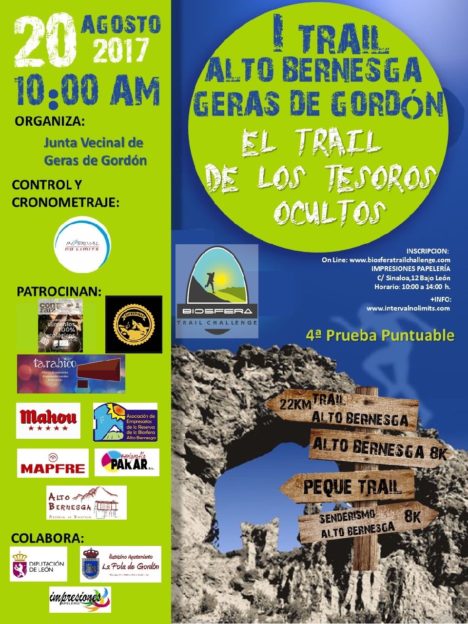 La carrera “I Trail Alto Bernesga-Geras de Gordón” es una prueba organizada por la Junta Vecinal de Geras de Gordón en colaboración con la empresa la empresa Interval No Limits. Se celebrará el día 20 de Agosto de 2017, con salida y meta en la localidad de Geras de Gordón.