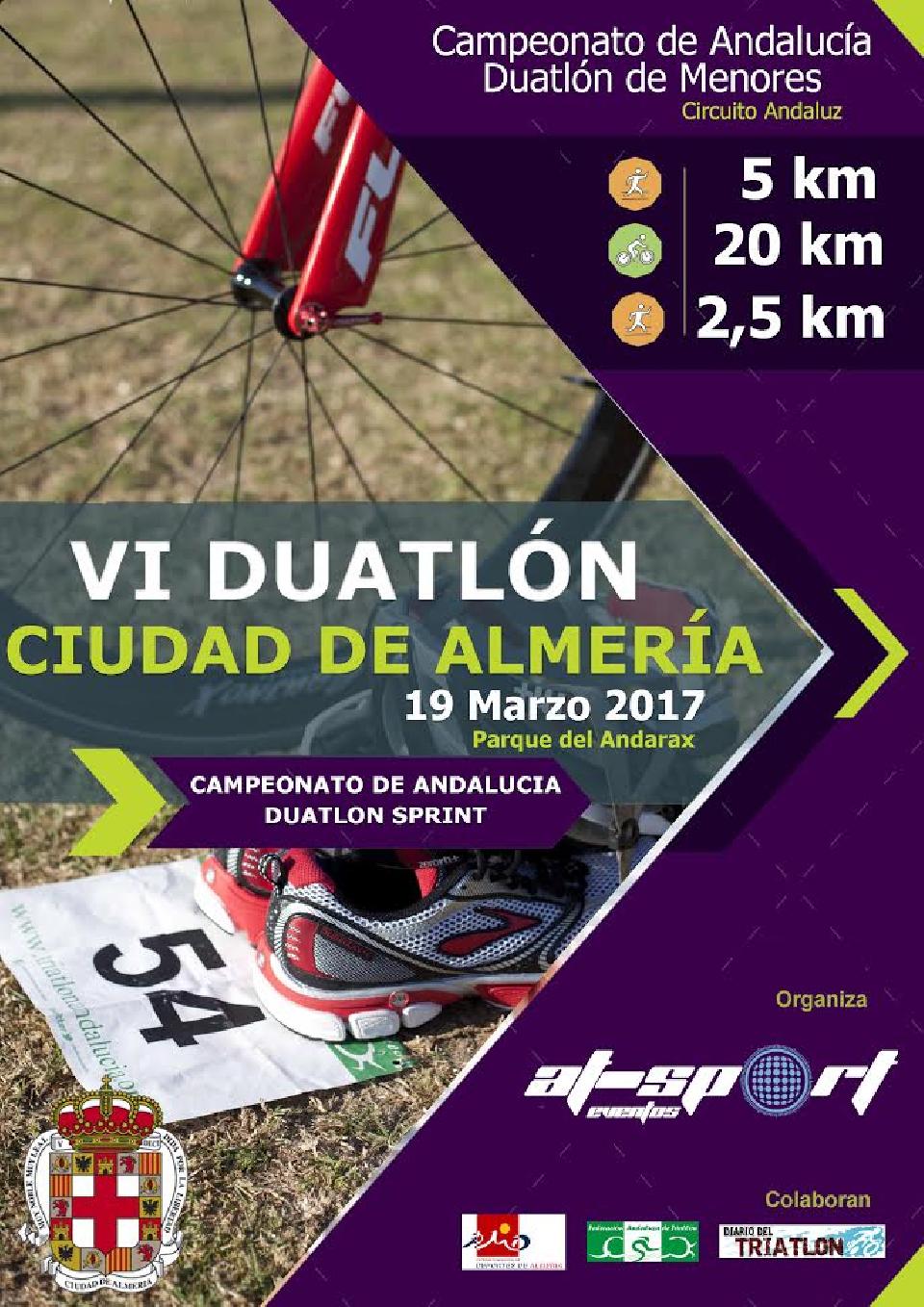 Classificacions FEDERADOS 19/03/2017 12:00 Pendent de Clas. Oficial NO FEDERADOS 19/03/2017 12:00 Pendent de Clas. Oficial Informació de contacte Contactar amb l'organitzador – 639616571 Reglament http://www.triatlonandalucia.org/competiciones/ii-duatl%C3%B3n-de-menores-ciudad-de-almer%C3%ADa