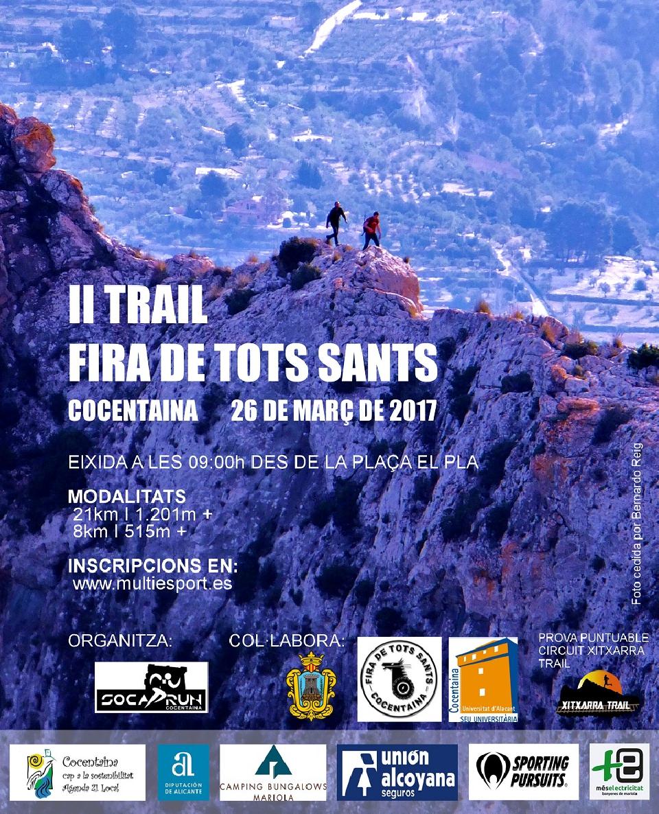 La entidad deportiva Grup de Recreació Esportiva d'Atletisme SOCA-RUN con NIF: G-54638804, organiza la carrera "II TRAIL FIRA DE TOTS SANTS", que se celebrará el domingo 26 de marzo de 2017 a las 09:00h, y en la que podrá participar cualquier persona sin distinción de sexo o nacionalidad.