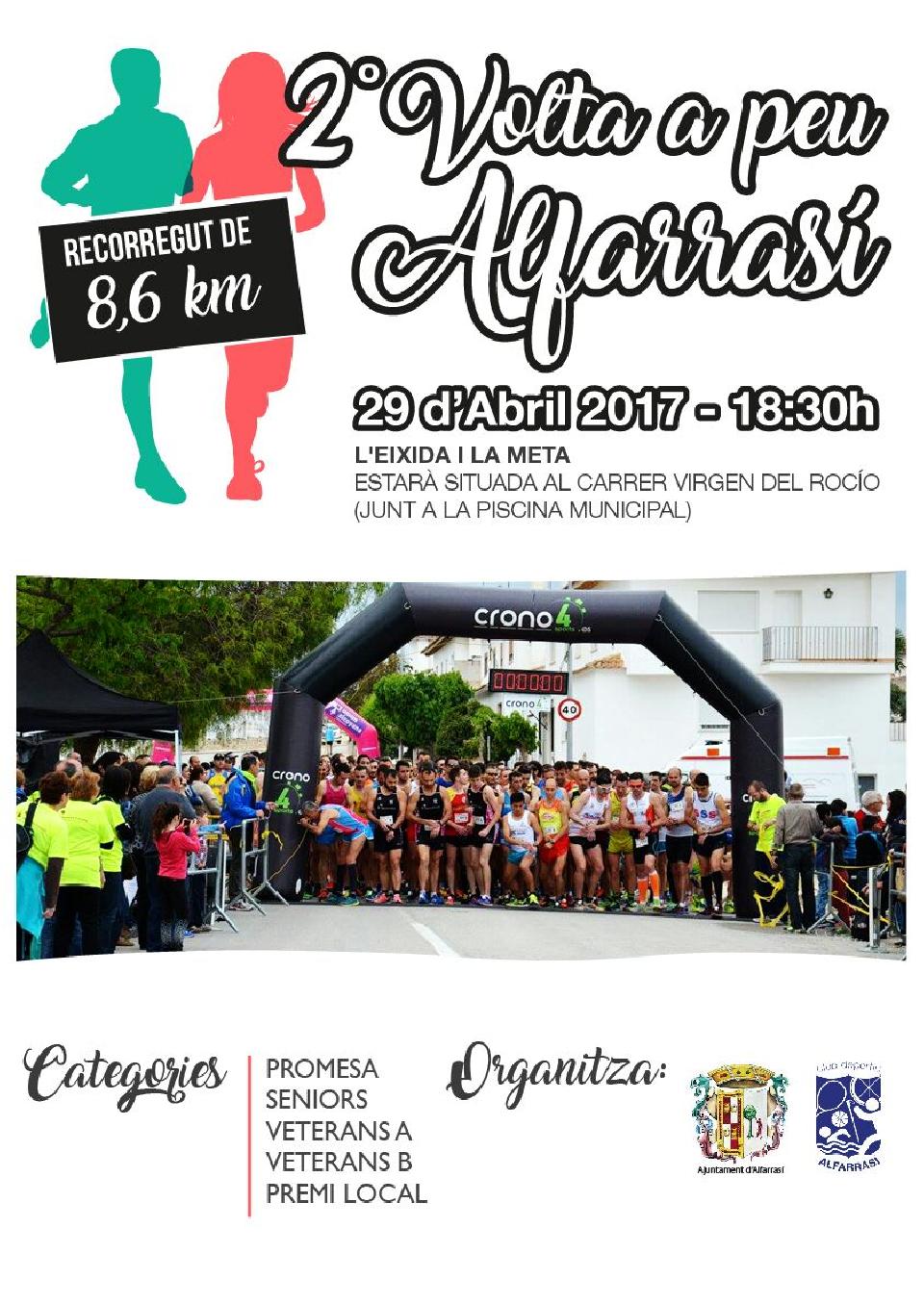 Art. 1. El Club Deportiu Alfarrasí, junt a l'Ajuntament d'Alfarrasí, organitza la II Volta a Peu a Alfarrasí que tindrà lloc el día 29 d'Abril de 2017 a les 18:30h.