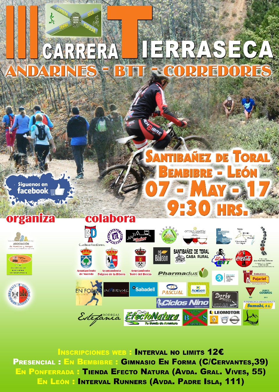 El próximo 7 de mayo de 2017 tendrá lugar la Tercera edición de la carrera TIERRA SECA, organizada por la Granja Escuela El Respaldo, Asociación de Familiares y Amigos de Proyecto Hombre y Ayuntamiento de Bembibre.
