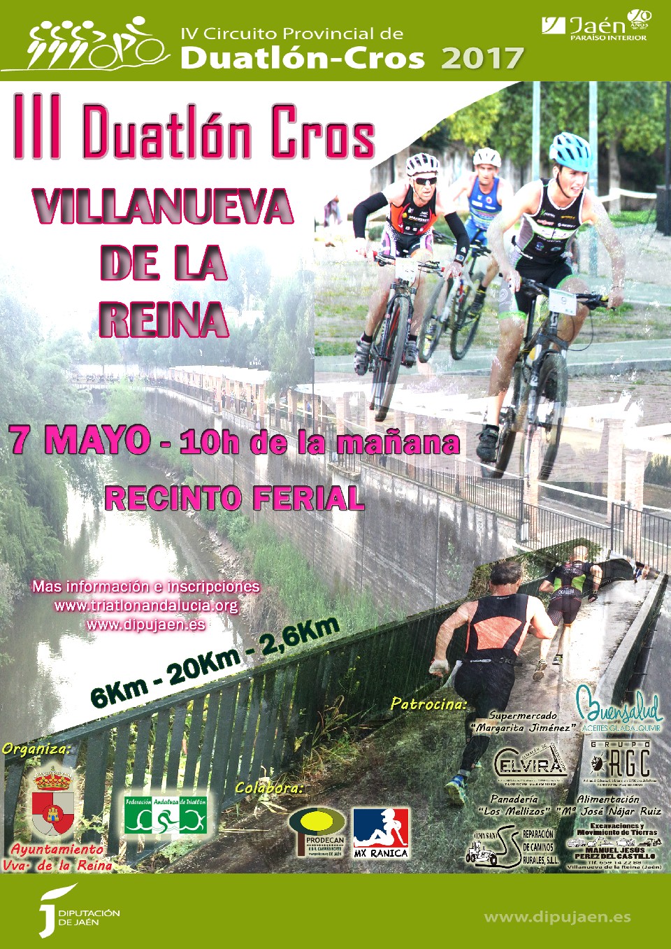 Classificacions MASCULINOS 07/05/2017 10:00 28.6km Veure classificacions FEMENINAS 07/05/2017 10:00 28.6km Veure classificacions FEDERADOS 6/20/2,6 07/05/2017 10:00 Pendent de Clas. Oficial NO FEDERADOS 6/20/2,6 07/05/2017 10:00 Pendent de Clas. Oficial Informació de contacte Contactar amb l'organitzador – 639616571 Reglament http://www.triatlonandalucia.org/sites/default/files/competiciones/Triptico%20III%20Duatl%C3%B3n%20Cros%20Vva.%202017.pdf