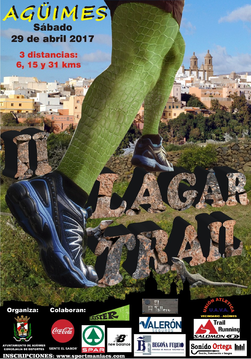 LAGAR-TRAIL DE AGÜIMES es una prueba organizada por la Concejalía de Deportes del Ilustre Ayuntamiento de la Villa de Agüimes en la Isla de Gran Canaria. Carrera de montaña individual en la que todos los participantes tendrán que realizar un recorrido diseñado por la organización que consta de tres distancias. Los tiempos máximos serán de: corta 6 kms 1.45´, media de 15 kms 3 horas y la distancia larga de 31 kms 5 horas. En ningún momento (excluyendo la salida donde se controlará el 1er km) se cortará la circulación y los participantes respetarán las normas viales en poblaciones y carreteras de uso y de dominio público. Serán descalificados de la competición, los participantes que no respeten en todo momento las mínimas normas cívicas (violencia, basura, cultivos, propiedad privada etc.). Los participantes serán responsables de los daños ocasionados como consecuencia de éste tipo de comportamientos