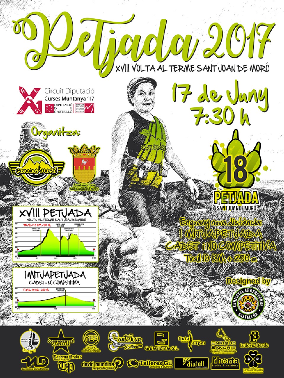 Enguany la nostra cursa celebra la seua majoria d'edat i per això hem volgut fer un pas avant i a més de la XVIII Petjada-Volta al terme de Sant Joan de Moró pertanyent al XI Circuit Diputació Provincial de Curses per Muntanya de la Diputació de Castelló, naix la I Mitja Petjada, pensada per als mes joves i per als senderistes.