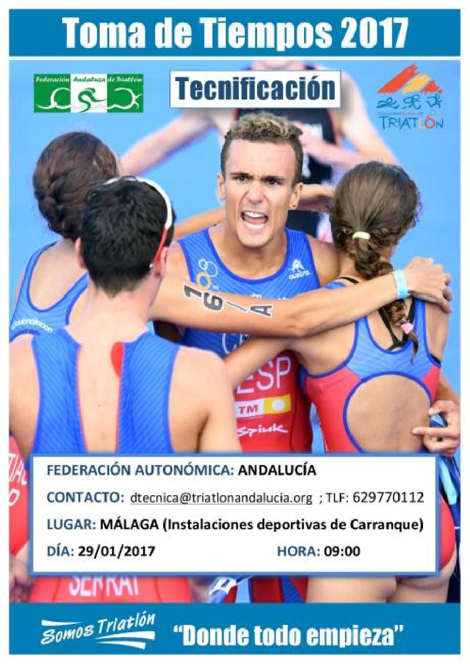 - Se establece una única sede el día 29 de enero, a la cual acudirán todos los deportistas andaluces interesados en Málaga (Carranque con piscina y pista de atletismo). La hora de inicio de la sesión de mañana (piscina) es a las 9:00 horas, mientras que la sesión de tarde (carrera) es a las 16:00 horas.