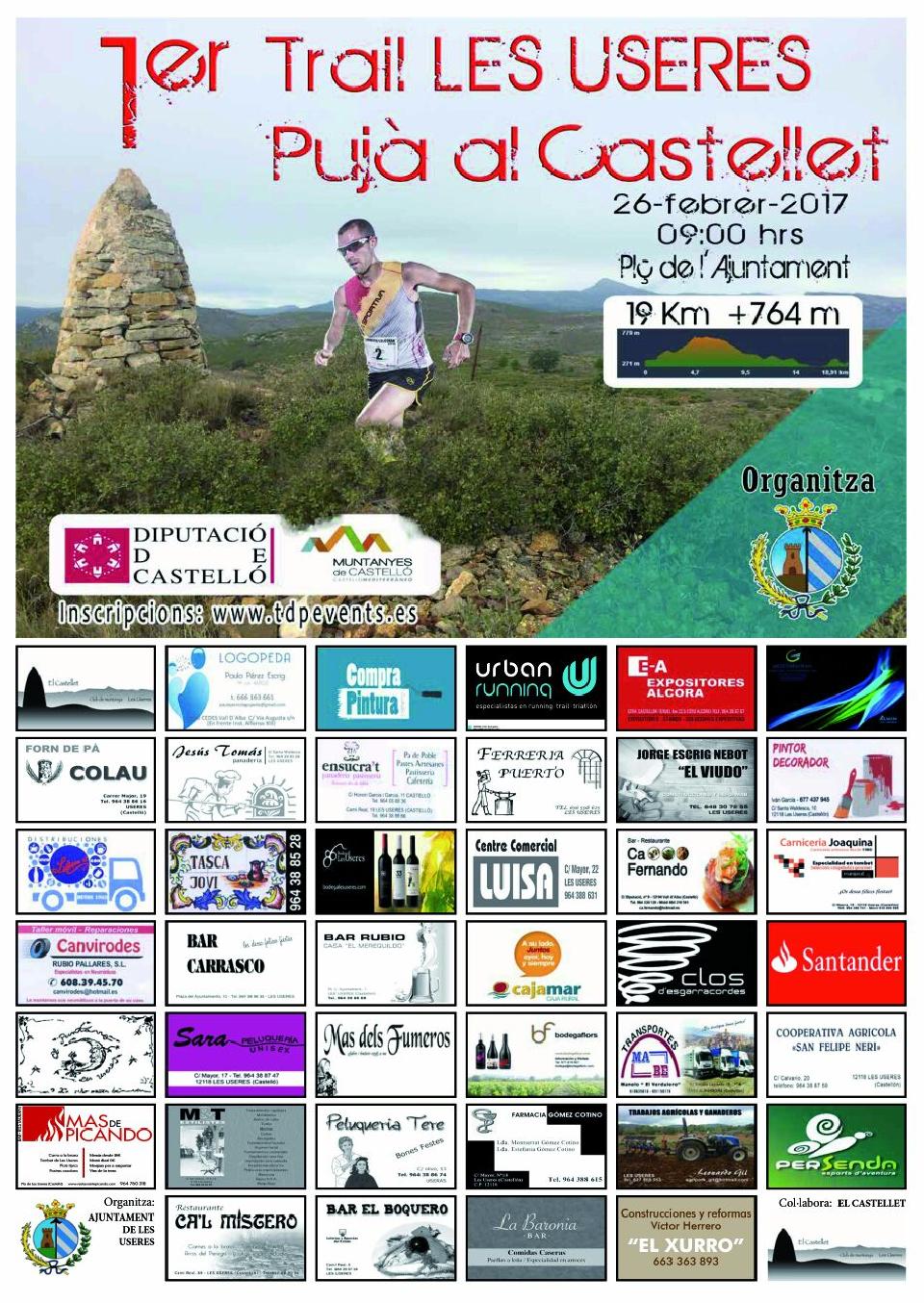 - El I TRAIL LES USERES “PUJADA AL CASTELLET” es celebrarà el proper dia 26 de febrer a les 09:00 hrs des de la Plaça de L’ Ajuntament i tindrà un temps màxim per finalitzar-la de 4:30 hr.
