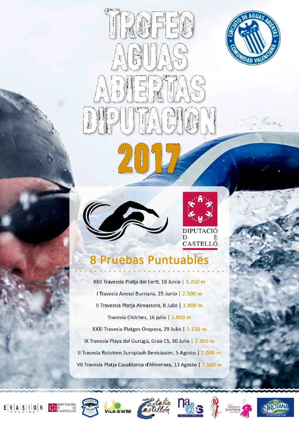 Evasion Running de Castellón organiza con el patrocinio de la Diputación Provincial de Castellón el I TROFEO DIPUTACION AGUAS ABIERTAS junto con los clubes responsables de éste trofeos que son, Club Natació Bromera Almassora, Club Natación Castalia Castellón, Escuela de Natación Nados, Club Vila-Swim, Masters Natación Evasion, Club Natación la Vall, Club Natació Vinaròs y Club Almenara Triatló para la temporada 2017.