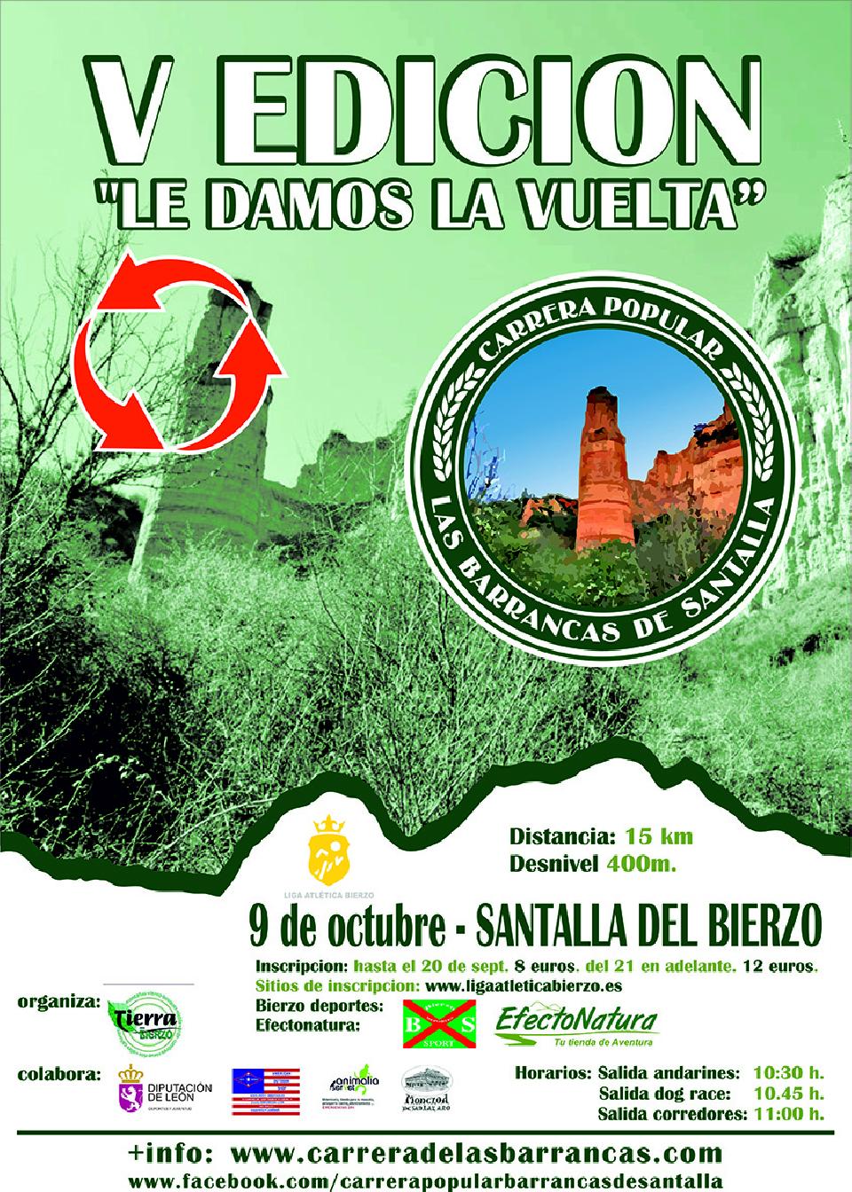 El Club Deportivo Tierrabierzo organiza la V edición de la carrera popular de las Barrancas de Santalla. Que tendrá lugar en la localidad de Santalla del Bierzo y sus alrededores, el día 9 de Octubre.