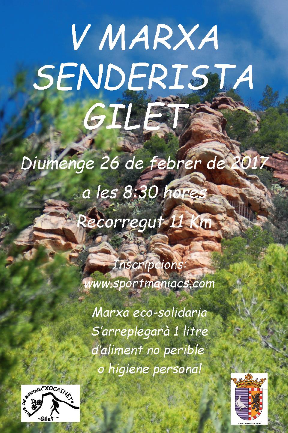 2. La V Marxa Senderista de Gilet es celebrarà el dia 26 de febrer de 2017 a les 08:30 hores.