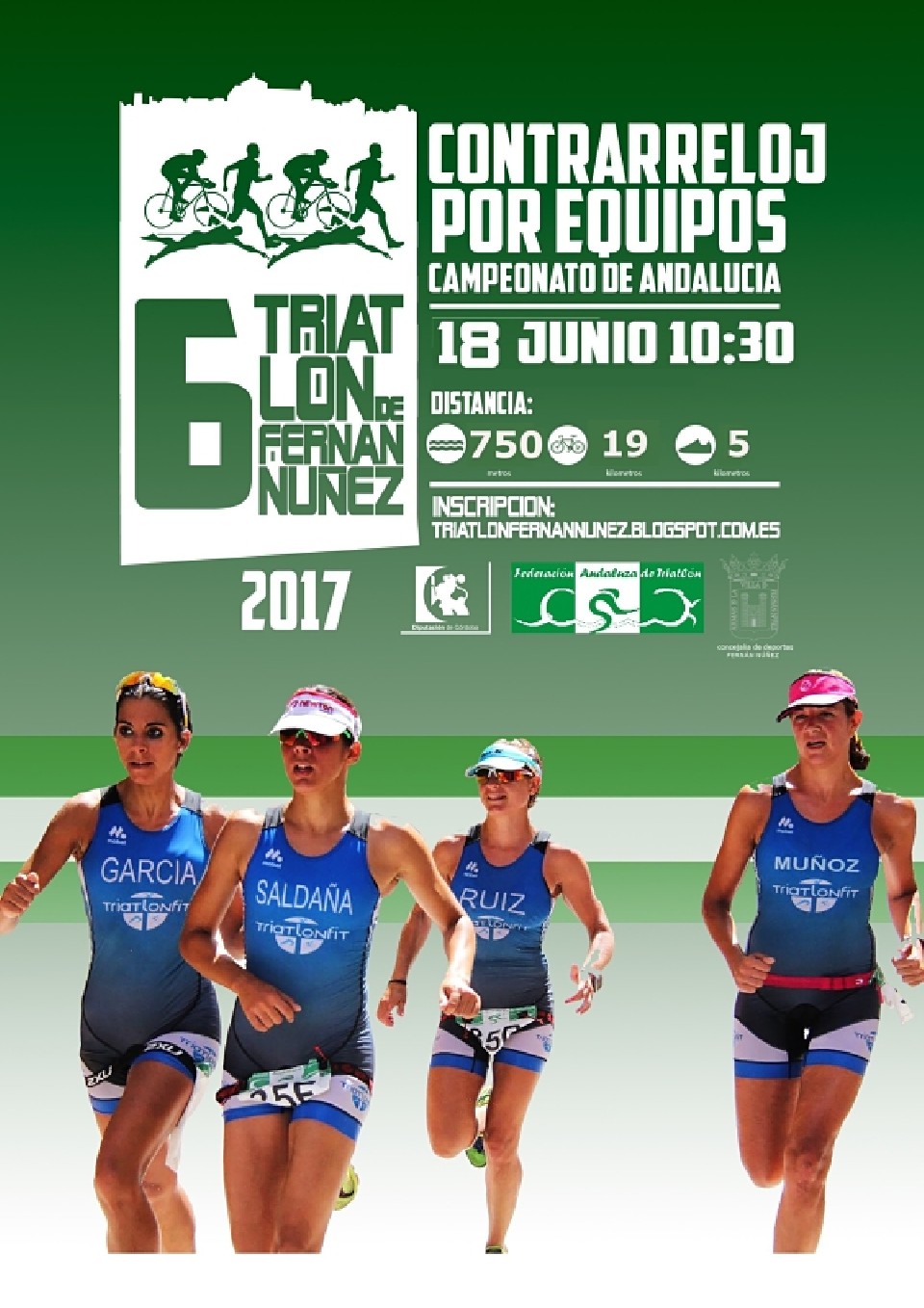 Classificacions CAMPEONATO DE ANDALUCÍA DE TRIATLON CONTRARRELOJ POR EQUIPOS 2017 18/06/2017 10:30 Pendent de Clas. Oficial Lista de espera CAMPEONATO DE ANDALUCÍA DE TRIATLON CONTRARRELOJ POR EQUIPOS 2017 18/06/2017 10:30 Pendent de Clas. Oficial Informació de contacte Contactar amb l'organitzador – 639616571 Reglament http://www.triatlonandalucia.org/competiciones/vi-triatl%C3%B3n-contrarreloj-por-equipos-villa-de-fern%C3%A1n-n%C3%BA%C3%B1ez