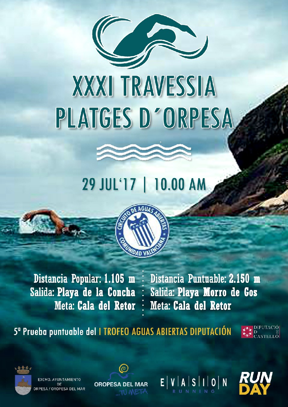 La XXXI TRAVESIA TROFEO AGUAS ABIERTAS es puntuable para el XIX Circuito de Travesías de la Comunidad Valenciana y para el I Trofeo Diputación de Castellón de Aguas Abiertas http://www.evasionrunningcastellon.com/