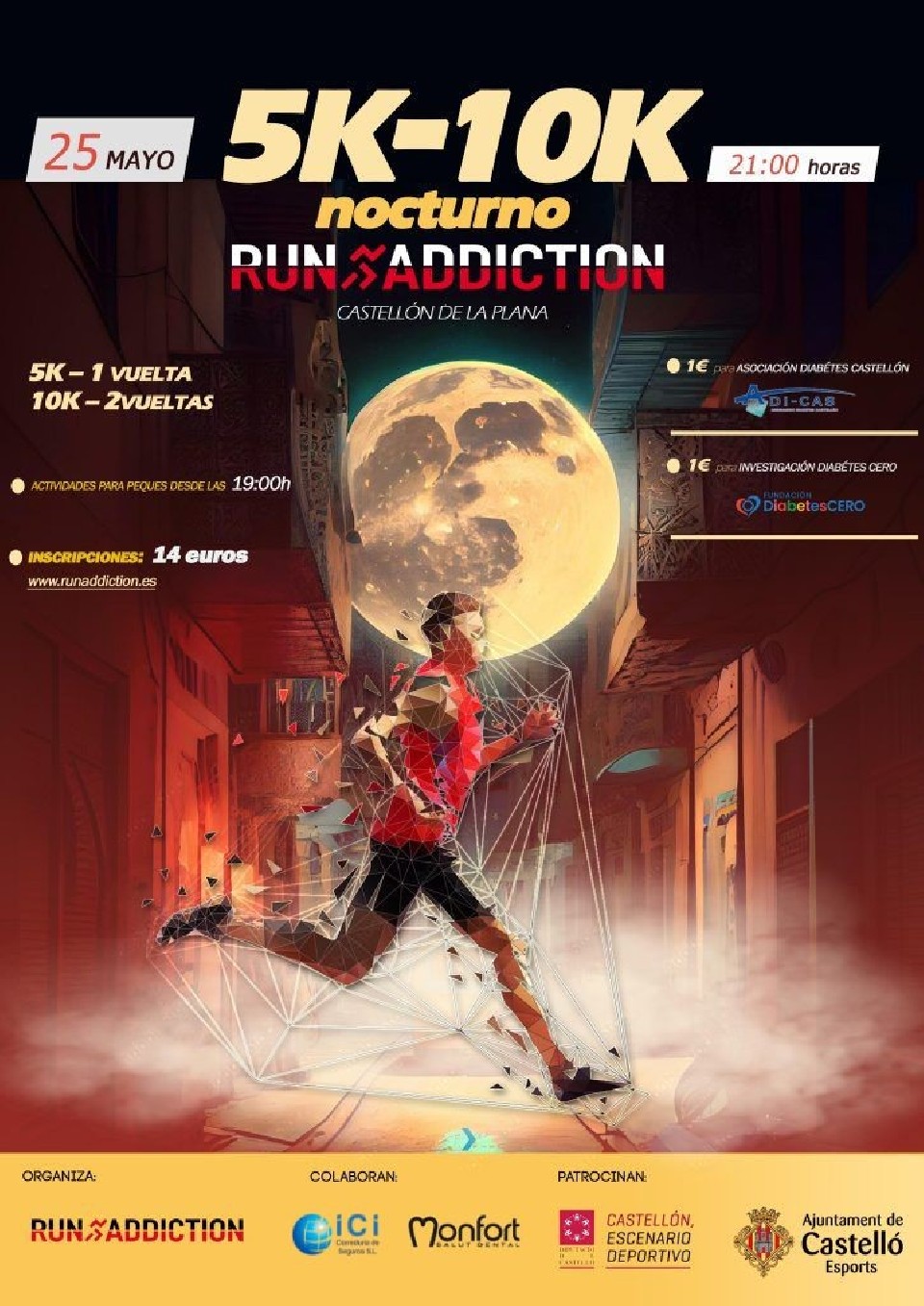 Artículo 1º.C.A.RUN ADDICTION organiza la edición de la carrera pedestre denominada 5K y 10K NOCTURNO RUN ADDICTION, prueba atlética en la que podrán participar todas las personas que lo deseen, debidamente inscritas, con 16 años cumplidos en el año natural en el que se celebre la prueba. De acuerdo con las limitaciones establecidas en la Normativa de la RFEA para pruebas de ámbito autonómico.
