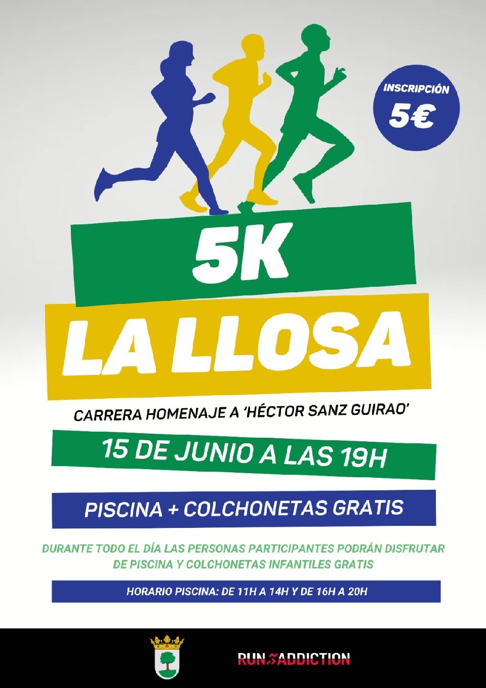 Artículo 1º. C.A.RUN ADDICTION Y EL AYUNTAMIENTO DE LA LLOSA organizan la edición de la carrera pedestre denominada 5K- LA LLOSA , prueba atlética en la que podrán participar todas las personas que lo deseen, debidamente inscritas, con 16 años cumplidos antes del día de la prueba. De acuerdo con las limitaciones establecidas en la Normativa de la RFEA para pruebas de ámbito autonómico.