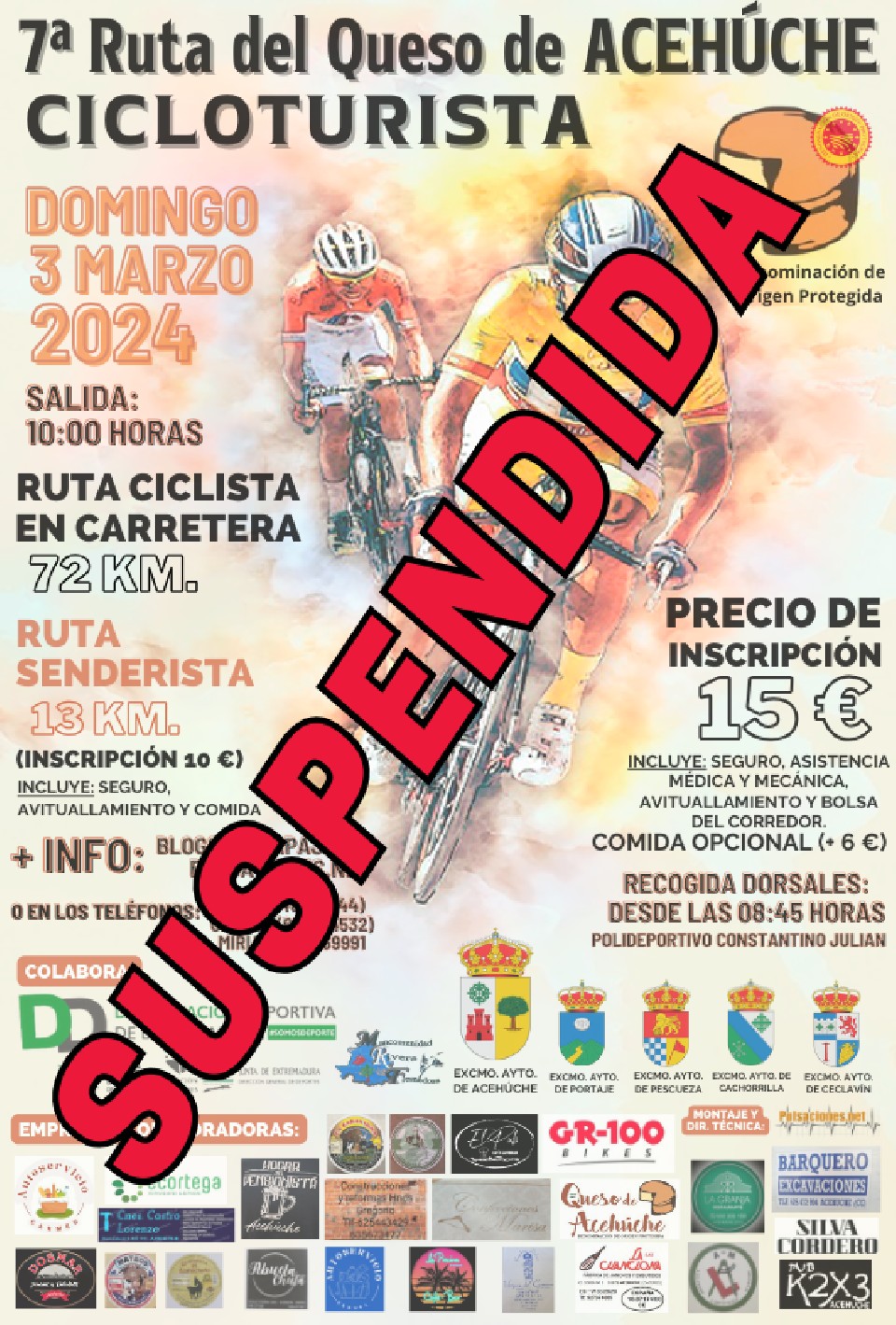 Ruta suspendida por motivos de falta de efectivos de cuerpos de seguridad (Guardia Civil) para cubrir el control y la seguridad del evento el día de la prueba.