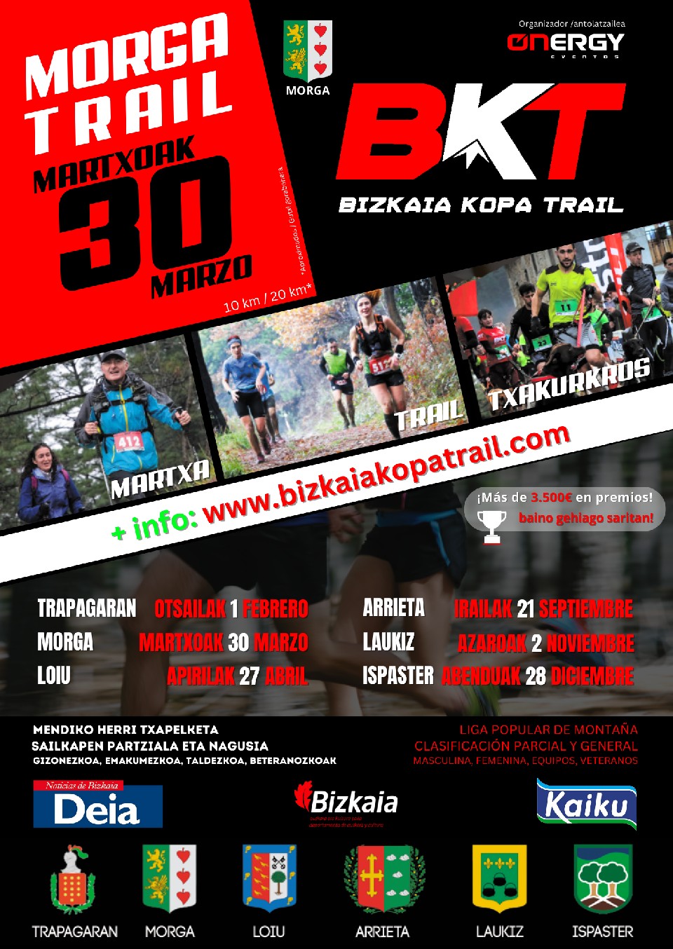 Results TRAIL 20K 30/03/2025 09:00 20km View results MARCHA 10K 30/03/2025 10:02 9.9km View results MARCHA 20K 30/03/2025 09:05 20km View results TXAKURKROS 10K 30/03/2025 09:45 9.9km View results TRAIL 10K 30/03/2025 10:00 9.9km View results Contact info Contact the organizer – Rules BIZKAIA KOPA TRAIL