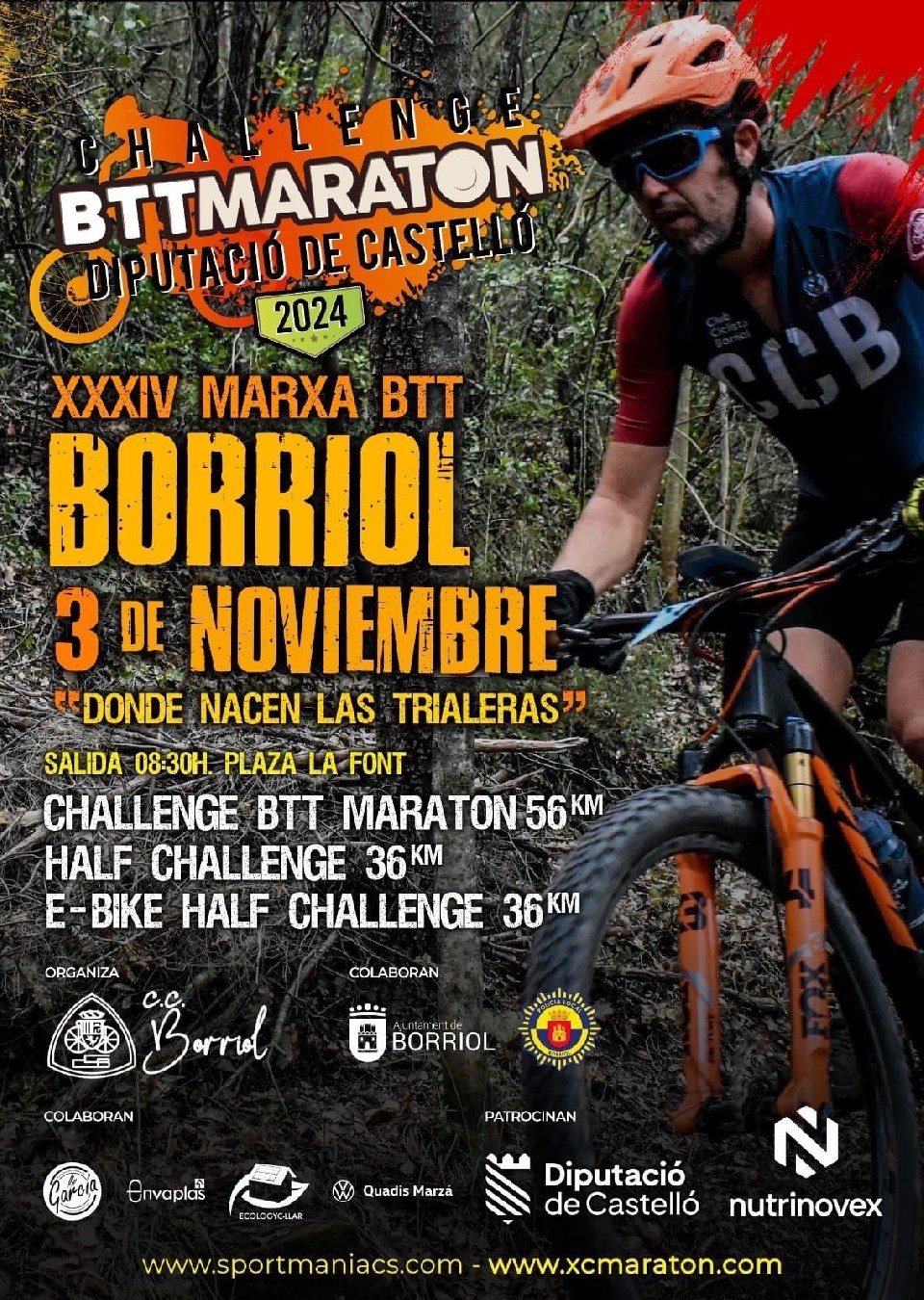 REGLAMENTO IX CIRCUITO CHALLENGE BTT MARATON DIPUTACIÓ DE CASTELLÓ 1.INTRODUCCIÓN. La unión de cinco pruebas ciclistas de BTT de la provincia de Castellón en formato maratón y marcha y cuyos recorridos son entre 40 y 70 kilómetros. Están organizadas durante el año 2024 por asociaciones, clubes u otros organismos legalmente constituidos. Los entes organizadores asumen el compromiso de llevar a cabo su prueba en el momento que quede publicado el calendario de la CHALLENGE, así como el de cumplir el presente reglamento. 2.PARTICIPANTES. Podrán participar todos los ciclistas que tengan cumplidos los 16 años en el momento de la inscripción. Los menores de edad que deseen inscribirse en alguna de las pruebas de la presente CHALLENGE deberán enviar a la organización de cada evento un correo electrónico solicitando la autorización, así como, entregar en el momento de recoger el dorsal el formulario de consentimiento completamente rellenado. Se tomará la edad que el participante tenga en 2024 para configurar las categorías, o sea, quien tenga 21 años el 1 de Enero y en Diciembre cumple años, para ámbitos de categoría serán 22 AÑOS y así en todas. Los participantes serán clasificados según su edad por categorías. 3. CIRCUITOS Este 2024 existirán 2 circuitos puntuables, compartirán el mismo reglamento y las mismas pruebas, un circuito MARATÓN y un circuito de MARCHAS CORTAS, con lideres en cada una de las categorías que se relacionan a continuación: ABSOLUTA (Todos los participantes inscritos) CATEGORIA EDAD AÑO NACIMIENTO SUB-23 (de 16 a 22 años) ELITE (de 23 a 29 años) MASTER 30 (de 30 a 34 años) MASTER 35 (de 35 a 39 años) MASTER 40 (de 40 a 44 años) MASTER 45 (de 45 a 49 años) VETERANOS + 50 (más de 50 años) FÉMINAS (a partir de 16 años) EQUIPOS (Puntuarán los tres primeros de cada equipo) E-BIKES: Categoría única 4.PRUEBAS. Las cinco pruebas que componen esta IX CHALLENGE son las siguientes: 1. Vall d’Alba, 17 de Marzo 2. Alt Maestrat, 9 de Junio 3. Atzeneta, 6 de Octubre 4. Alcora, 20 de Octubre 5. Borriol, 3 de Noviembre 5. PUNTUACIÓN CHALLENGE. Se establece las siguientes puntuaciones según la clasificación de cada participante en su categoría (y en clasificación absoluta) según la tabla que se adjunta: PUESTO 1 2 3 4 5 6 7 8 9 10 PUNTOS 275 265 260 255 250 245 240 235 230 225 Cada participante participará en dos clasificaciones: tanto en la clasificación absoluta como en la de su categoría. Sumará los puntos que haya conseguido en la general en una clasificación y también los obtenidos según su categoría en la otra clasificación (Ejemplo: el vencedor de la primera prueba es un élite. Sumará 275 puntos en la clasificación absoluta por ser 1º en la general, pero también 275 en la clasificación de su categoría élite por ser 1º de esa clasificación). Del puesto 11 hasta el último de cada categoría se asignará a cada participante 1 punto menos que el clasificado anterior. En caso de llegar a asignar 1 punto a un participante finalizado y existir más clasificados todavía, se asignará 1 punto también a todos hasta la totalidad de participantes que finalicen la prueba. Después de cada prueba se entregará un maillot a los líderes de cada categoría y se deberá vestir en la siguiente prueba. Su uso es obligado y quien no lo haga será sancionado por la organización con una penalización de 25 puntos en la clasificación. Si tras una prueba hay un empate entre los primeros y segundos clasificados el maillot se entregará a quien haya obtenido un mejor resultado en la última prueba. 6.PREMIOS. Para la clasificación final sumarán los resultados de las 5 pruebas obtenidos en la CHALLENGE. Al finalizar todos los maratones se celebrará un acto y se premiará a los tres primeros clasificados en cada categoría. Desempates: Si en la clasificación final se diera un empate a puntos entre 2 participantes se usarán los mejores resultados de cada uno, ganará quien tenga el mayor número de primeros puestos, segundos puestos, etc. De persistir el empate, el mejor clasificado en la última prueba disputada será el ganador. 7.INSCRIPCIONES. Se establecen dos modalidades de inscripción: un BONO inscripción a las CINCO pruebas o la inscripción individual a cada una de ellas. Se establece como norma general la inscripción anticipada fijando el límite para realizar las inscripciones en las 23:59 horas del miércoles anterior al día de celebración de la marcha. La inscripción se realizará a través de www.sportmaniacs.com mediante abono con tarjeta de crédito. 8.DESCALIFICACIONES. Cualquier participante que incumpla cualquiera de las normas que a continuación se detallan, será descalificado de la prueba correspondiente perdiendo todos los derechos, puntos y premios que en ella pudiese obtener. Por ello mismo, el club al que represente dicho participante se verá perjudicado por la pérdida de los puntos correspondientes al infractor/a. • No usar el casco homologado para la práctica del ciclismo. • Tener una conducta antideportiva con la organización, personal vinculado a la prueba ciclista, material de la misma y público en general. • No realizar el trayecto por el recorrido marcado por la organización. • No respetar las normas de circulación • Llegar fuera del horario establecido en cualquiera de los puntos de control de la prueba o en META. • Arrojar desperdicios u objetos fuera de los puntos de control o avituallamiento. • Usar un vehículo diferente a una bicicleta de montaña propulsada únicamente por el esfuerzo físico del ciclista. • Llevar el dorsal en lugar no visible o recortado. • No atender las indicaciones de organización o jueces. • No respetar el orden de salida estipulado por las organizaciones de las pruebas. • Por participar con un dorsal/chip que corresponda a otro participante. • Por cambiar la bicicleta con la que ha iniciado la prueba. 9.ORGANIZACIÓN DE LA SAL