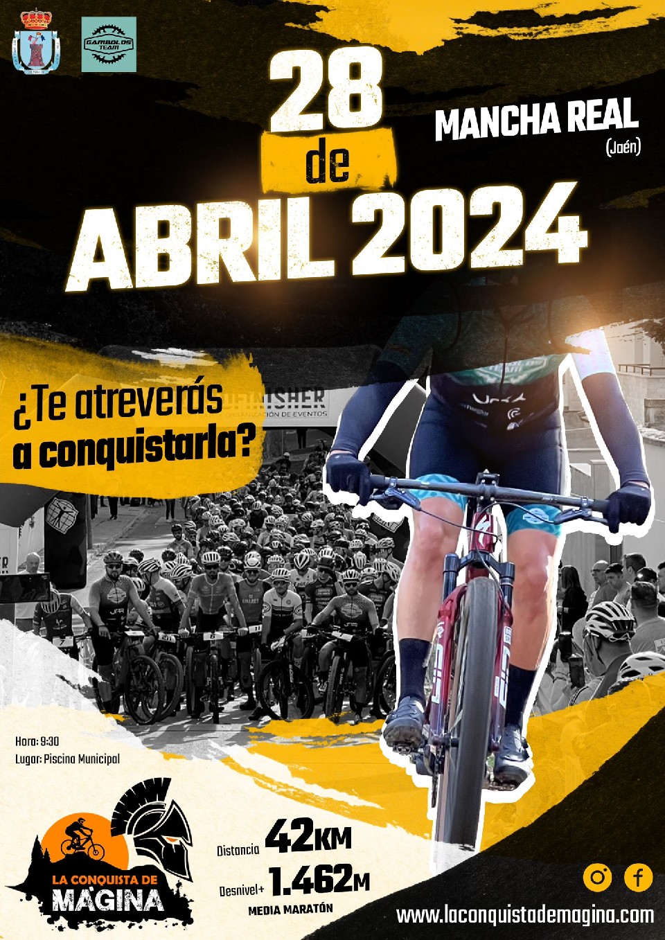 El C.D. Garibolos Team junto al Excmo. Ayuntamiento de Mancha Real, organiza la prueba ciclista denominada «LA CONQUISTA DE MÁGINA». La edición 2024 se disputará en la localidad de Mancha Real, provincia de Jaén, el día 28 de Abril de 2024, siguiendo los siguientes horarios: