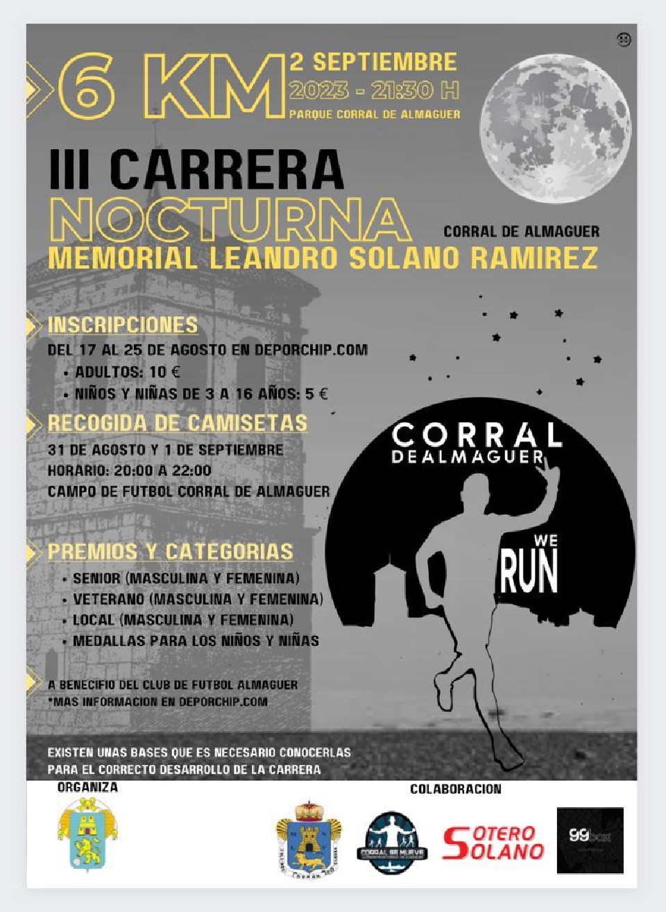 Results INFANTILES 16/09/2023 22:00 1km Pending Results GENERAL 6km View results Contact info Contact the organizer – 925257314 Rules AQUI