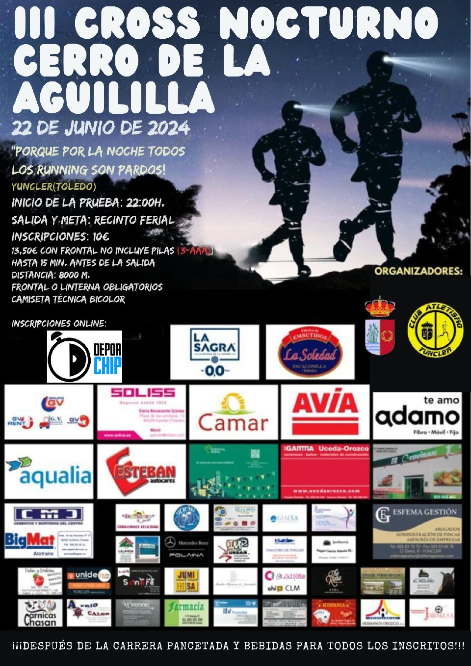 Results GENERAL 22/06/2024 22:00 8km Pending Results Contact info Contact the organizer – 925257314 Rules AQUÍ