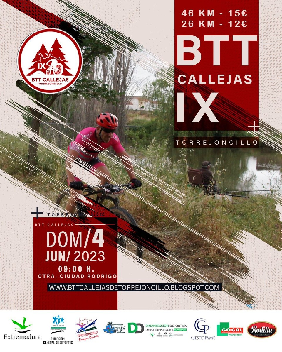 IX BTT CALLEJAS DE TORREJONCILLO REGLAMENTO 1-DÍA, LUGAR Y HORA: La IX BTT Callejas de Torrejoncillo una Ruta Ciclista federada no competitiva que se realizará el Domingo 4 de Junio con salida a las 9.00h de la AVENIDA CIUDAD RDRIGO. Podrán participar todos los mayores de 13 años, debiendo rellenar los menores de edad la autorización y enviarla a la organización. 2- INSCRIPCIÓN: La inscripción de esta prueba se realizará a través del formulario en web(VER PESTAÑA INSCRIPCIONES) con las siguientes condiciones y un máximo de 150 plazas. Hay dos plazos de inscripción: PLAZO 1: Desde el 15 de Abril a las 10.00h hasta el 13 de Mayo a las 23.59h Cuota por participantes Ruta larga: 15 Euros Cuota por participantes Ruta Corta: 12 Euros PLAZO 2: Desde el 14 de Mayo a las 00.00h hasta el 18 de Mayo a las 14.00 Cuota por participantes Ruta larga: 20 Euros Cuota por participantes Ruta Corta: 17 Euros La cuota de inscripción incluye: - Seguro de RC - Seguro de Accidentes. - Avituallamiento en ruta. - Asistencia en ruta(evacuaciones). - Asistencia médica en ruta con médico y ambulancia. - Avituallamiento final. - Dorsal de la prueba personalizado. - Bolsa del ciclista que incluirá dulce torrejoncillano y embutido torrejoncillano. - Manguera para la limpieza de bicicletas. CONTACTO ORGANIZADOR: http://bttcallejasdetorrejoncillo.blogspot.com Fernando Manzano Esteban pabellontorre@gmail.com 699043463 El máximo de participantes es de 150 entre ambas pruebas. 3- PARTICIPANTES: Los participantes deben ser mayores de 13 años. Podrán dejar los vehículos y recoger el dorsal desde las 8.00h en la secretaría situada en el Pabellón Municipal de Deportes 4- RECORRIDO: Habrá 2 recorridos, Ruta Corta(26km) y Ruta Larga(49km): Salida Conjunta ambas pruebas AVENIDA CIUDAD RODRIGO 9.00h Llegada AVENIDA CIUDAD RODRIGO 10.15h Cabeza Corta y cierre de meta 14.00h 5- SEÑALIZACIÓN: El recorrido estará señalizado con cinta blanca de baliza y con carteles de madera indicativos. 6- AVITUALLAMIENTOS: Ruta CORTA: PATOS(Pk 16,2) Avi Líquido y Sólido: Agua, bebida isotónica, barritas de chocolate y fruta. META(PK 26): Avituallamiento final(Agua, isotónico y fruta) Ruta LARGA: PORTEZUELO(Pk 31,6) Avi Líquido y Sólido: Agua, bebida isotónica, barritas de chocolate y fruta. PATOS(Pk 39) Avi Líquido y Sólido: Agua, bebida isotónica, barritas de chocolate y fruta. META(PK 49) Avituallamiento final(Agua, isotónico y fruta. 7- PREMIOS: Al no ser una prueba competitiva, no hay previstos premios, pero sí habrá clasificación. 8- DERECHOS DE INSCRIPCIÓN: La cuota de inscripción incluye: - Seguro de RC - Seguro de Accidentes. - Avituallamientos en ruta. - Asistencia en ruta(evacuaciones). - Asistencia médica en ruta con médico y ambulancia. - Avituallamiento final. - Dorsal de la prueba personalizado. - Bolsa del ciclista que incluirá dulce torrejoncillano y embutido torrejoncillano. - Manguera para la limpieza de bicicletas 9- DEBERES DE LOS PARTICIPANTES: Es obligatorio el uso del casco para todos los participantes. El ritmo será libre para todos los participantes. Durante todo el itinerario, especialmente en los tramos donde atraviesen carretera, los participantes están obligados a acatar las Normas de Circulación de Tráfico. Los participantes que se salgan del recorrido balizado fuera de lo estipulado por la organización, quedan exentos de cobertura jurídica responsabilizándose de incidentes causados o sufridos en dichos tramos ajenos a la ruta. La organización podrá modificar el itinerario para garantizar la seguridad de los participantes, debiendo respetar las indicaciones de la organización. 10- SERVICIOS: Ropero en la salida. Servicios de asistencia: Ambulancia con médico: En el avituallamiento y escoba. Vehículo de apoyo: Coche escoba para posibles incidencias. Avituallamientos: 2 en la larga y 1 en la corta. Lavado de Bicicletas 11- TIMING DE LA IX BTT CALLEJAS DE TORREJONCILLO 8.00h Apertura Secretaría AVENIDA CIUDAD RODRIGO. Recogida de Dorsales. 9.00h Salida AVENIDA CIUDAD RODRIGO 10.15h Llegada probable primero participante Corta a Torrejoncillo 10.45h Llegada probable último participante Corta a Torrejoncillo 11.30h Llegada a Torrejoncillo cabeza Larga 14.00h Cierre meta 12- RESPETO AL MEDIO AMBIENTE: La Ruta transcurre por parajes naturales que debemos respetar, por lo que no se permite dejar ningún tipo de suciedad a nuestro paso, ni está permitido salirse de los caminos por los que transcurre. 13- AUXILIO EN ACCIDENTES: Los participantes están obligados a auxiliar a los accidentados y a ponerlo en conocimiento de la organización. 14- RESPONSABILIDAD: Los participantes con su participación en la prueba aceptan: Que conocen y aceptan todo el Reglamento. Que declaran conocer que la IX BTT Callejas de Torrejoncillo es una ruta ciclista no competitiva. Que la prueba transcurre por caminos públicos abiertos al tráfico. Que aceptan los riesgos inherentes a la participación de dicha prueba abierta al tráfico. Que se compromete a cumplir con las normas de la Ley de Seguridad Vial y su reglamento, velando por su seguridad y del resto de participantes y usuarios de la vía pública. Que exime a los anteriormente señalados de cualquier perjuicio que, por motivos de salud, pudieran derivarse de mi participación en esta marcha cicloturista, asumiendo personalmente el riesgo inherente para la salud que supone el esfuerzo físico requerido para la participación en esta prueba. Que declara conocer, por haber sido informado de ello, estado satisfecho de la información recibida, pudiendo haber formulado las preguntas convenientes y aclaradas todas mis dudas de los riesgos propios de la participación en la prueba, como son: - Existencia de todo tipo de vehículos ajenos a la organización circulando por el recorrido de la prueba. - Que dichos vehículos circulan entre los ciclistas como usuarios normales de las vías. - Que acepto y conozco que me encontraré con todo ti