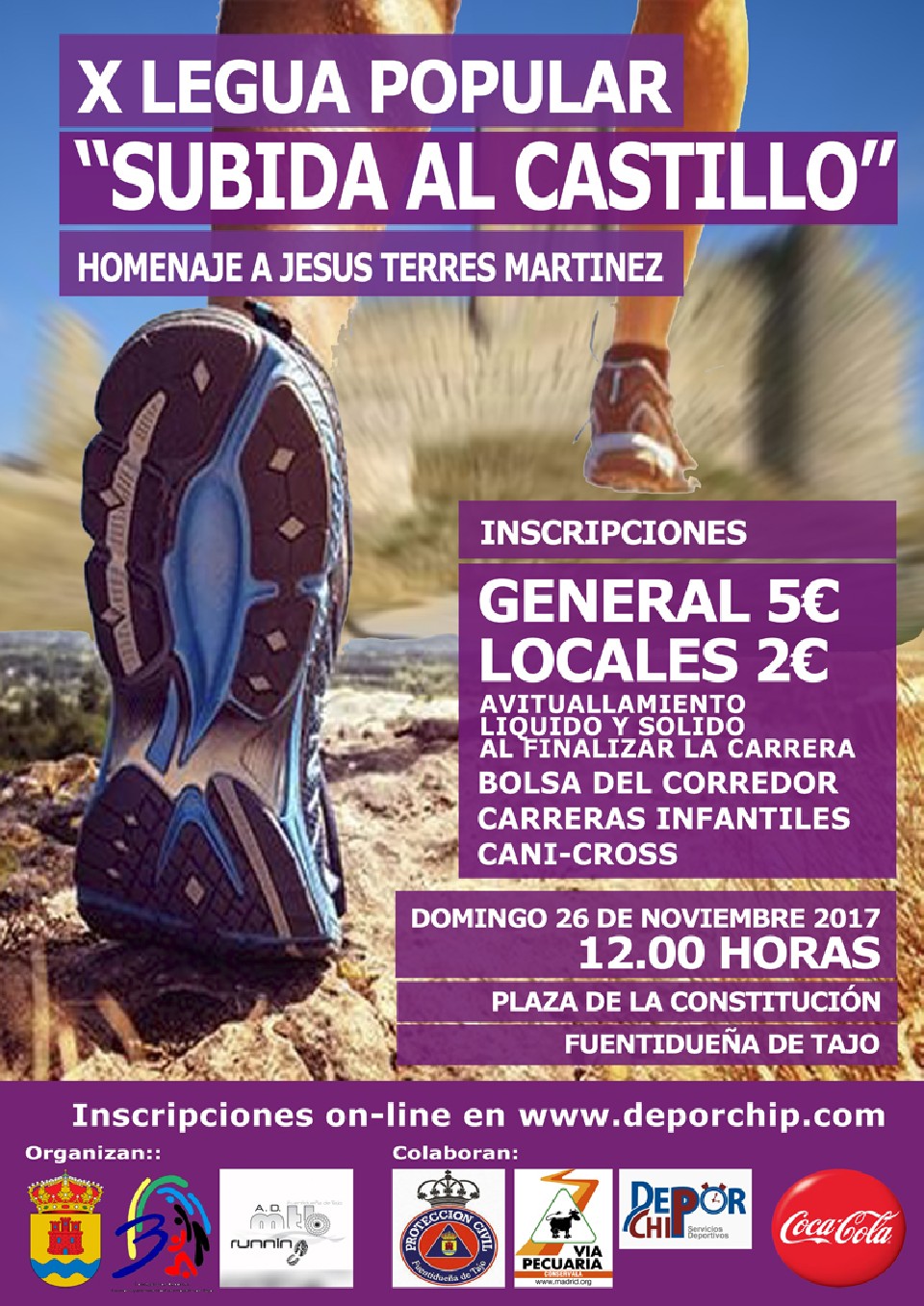 Results LEGUA POPULAR 26/11/2017 12:00 5.6km View results CANICROSS POPULAR 26/11/2017 12:05 5.6km View results Contact info Contact the organizer – Rules http://www.deporchip.com/eventos/pruebas2017/leguafuentiduena17/reglamento.pdf