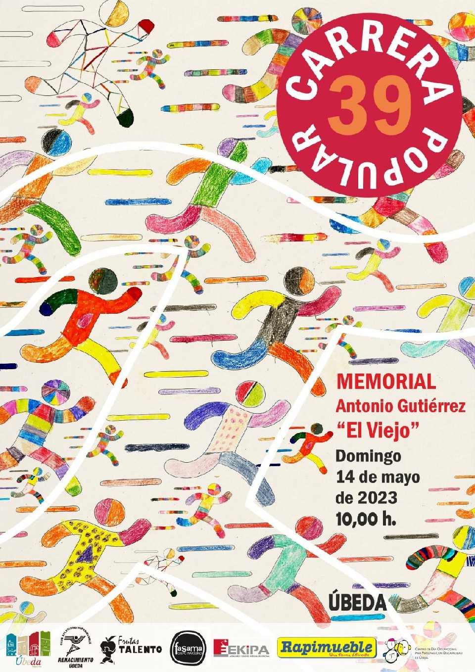 Results Inscripción de Infantil a Bachillerato/FP 14/05/2023 11:05 1km Pending Results Inscripción colectiva de Infantil a Bachillerato/FP 14/05/2023 08:00 1km Pending Results Inscripción de Senior a Veteranos 14/05/2023 10:00 6.6km Pending Results Inscripción colectiva de Senior a Veteranos 14/05/2023 08:00 6km Pending Results CARRERA 500M 14/05/2023 11:35 0.5km View results CARRERA 1000M 14/05/2023 11:05 1km View results CARRERA 3,3 KM 14/05/2023 10:00 3.3km View results CARRERA 250M 14/05/2023 11:45 0.25km Pending Results CARRERA 6,6KM 14/05/2023 10:00 6.6km View results CARRERA 800M 14/05/2023 11:20 0.8km View results Contact info Contact the organizer – Rules https://s3-eu-west-1.amazonaws.com/sm-fotos.sportmaniacs.com/back/REGLAMENTO XXXIX Carrera VIEJO_14-5-23_con recorridos.pdf