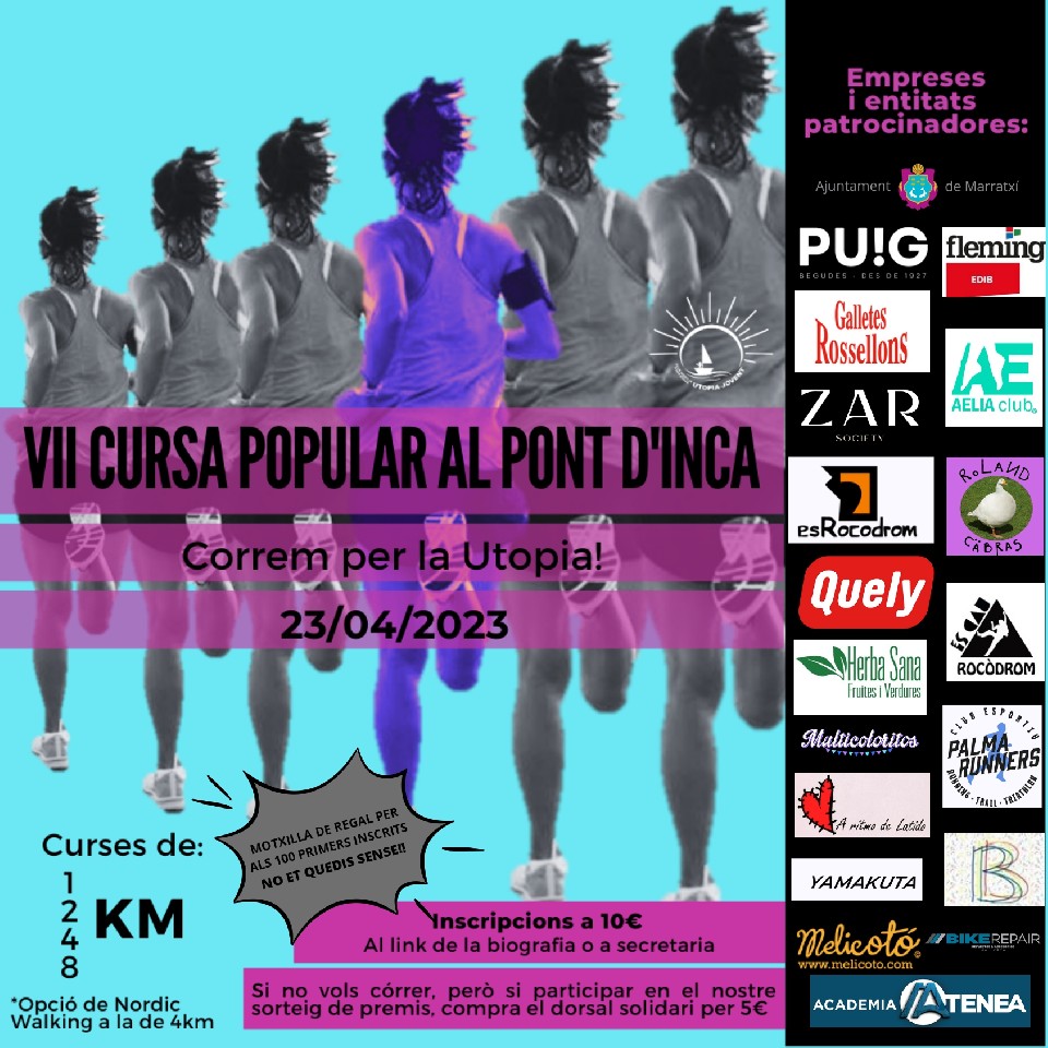 Results DORSAL SOLIDARI 23/04/2023 09:00 Pending Results ALEVI (9-11 anys) 23/04/2023 10:30 1km View results INFANTIL (12-14 anys) 23/04/2023 10:30 2km View results BENJAMI (6-8 anys) 23/04/2023 10:00 1km View results 4Km 23/04/2023 11:00 4km View results 4 KM Nordic Walking 23/04/2023 11:00 8km View results 8Km 23/04/2023 11:00 8km View results Contact info Contact the organizer – 620 99 66 26 Rules REGLAMENTO