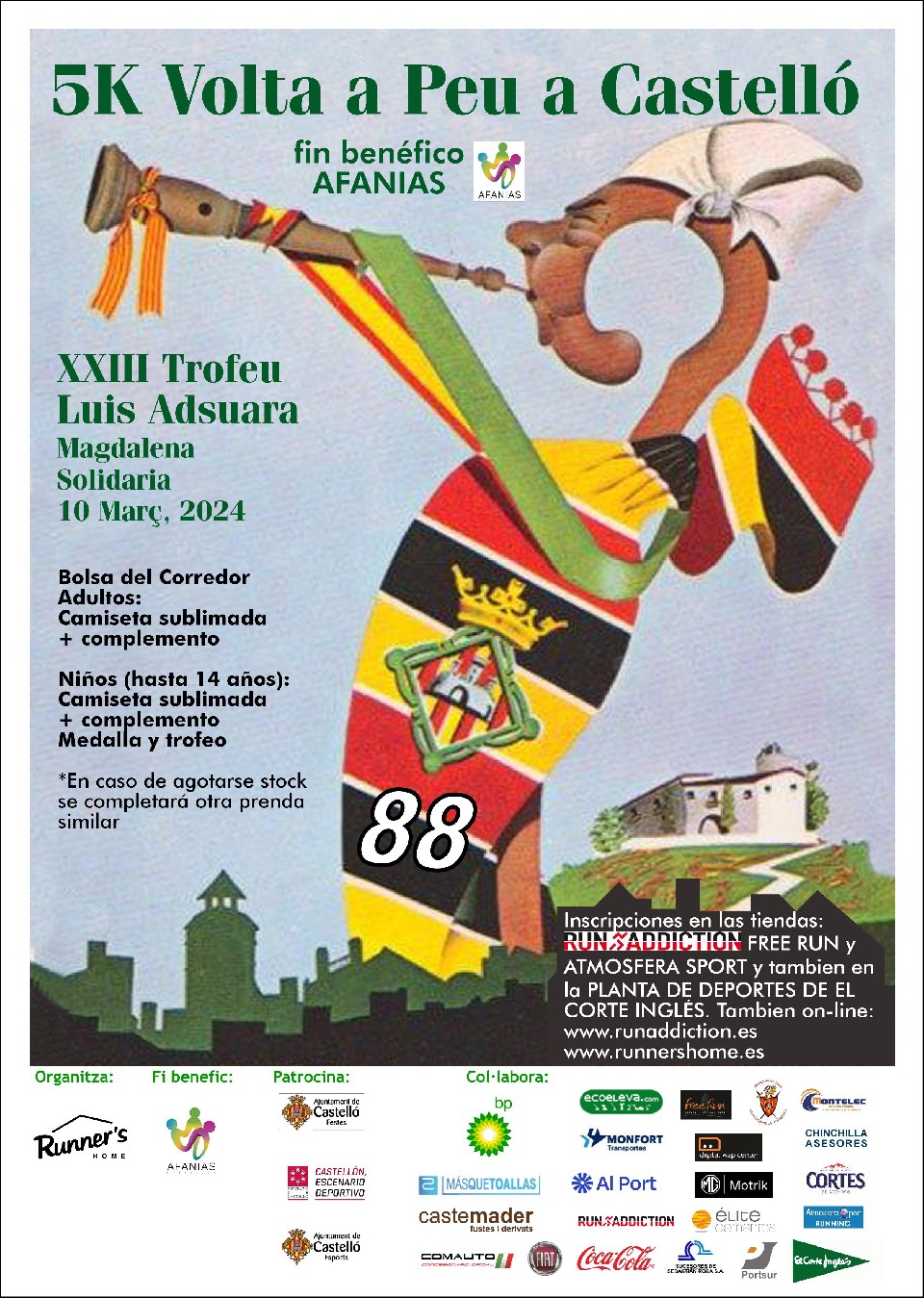 a la Ciutat de Castelló-XXIII Trofeu Luis Adsuara, prova atlètica a la que tindrà accés qualsevol persona, sense distinció d’edat, nacionalitat o sexe y que se enmarque un any mes dins de la semana de festes de la Magdalena 2024.