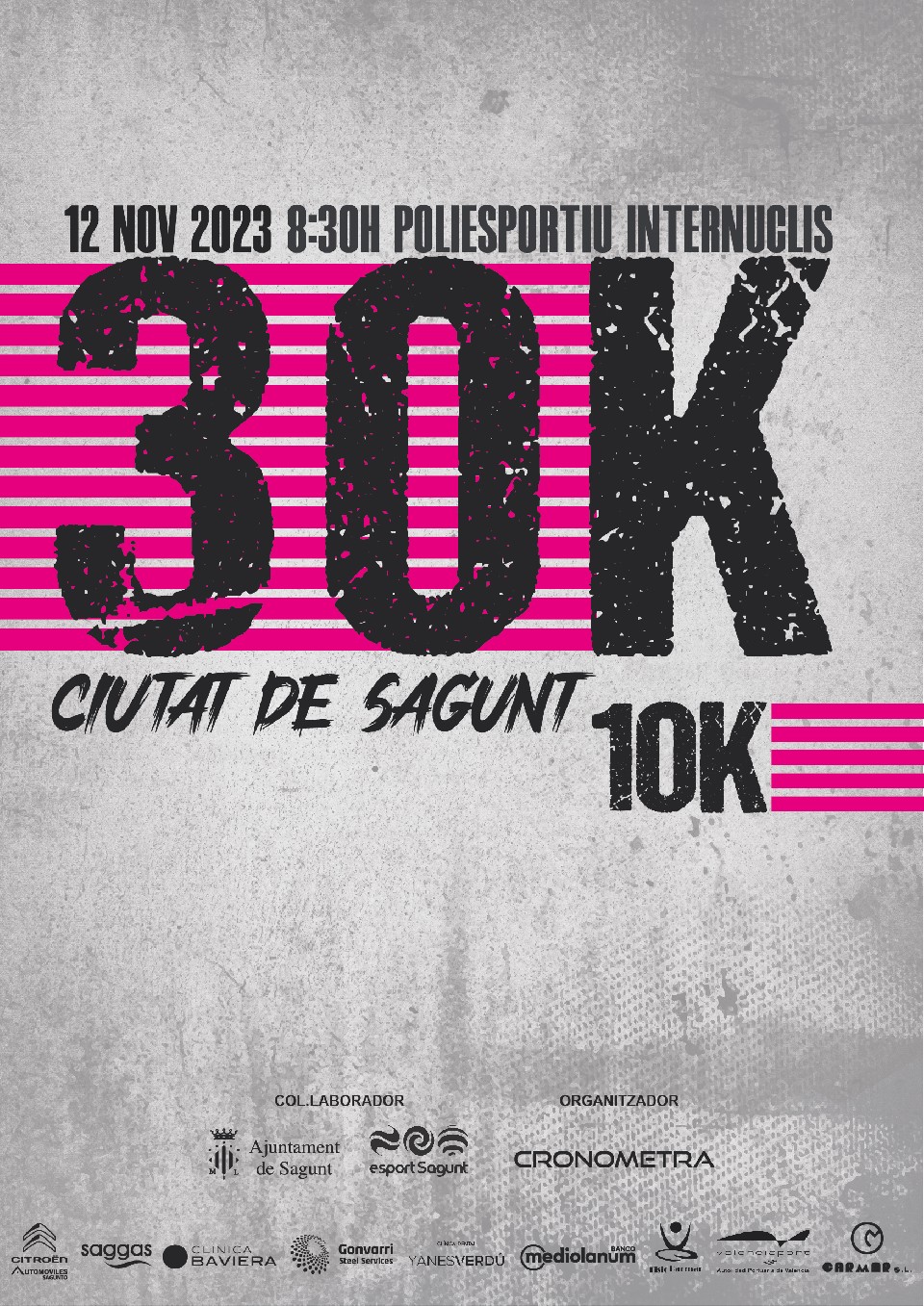 Art. 1) El 30K i 10K CIUTAT DE SAGUNT es una carrera impulsada por el Ayuntamiento de Sagunto y organizada por CRONOMETRAJE Y ORGANIZACION DE EVENTOS DEPORTIVOS SL con la colaboración de empresas locales y otras organizaciones.