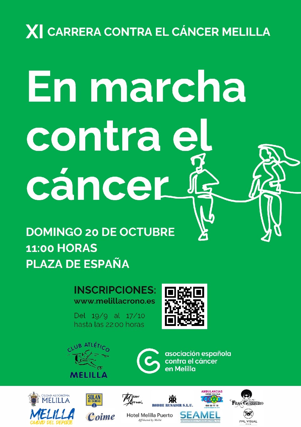 El domingo 20 de octubre de 2024 se celebrará la undécima edición de la Carrera “En Marcha contra el Cáncer”, con dos pruebas competitivas: una para categorías menores, que deberán realizar 1000 metros y la prueba absoluta, de 5 km.