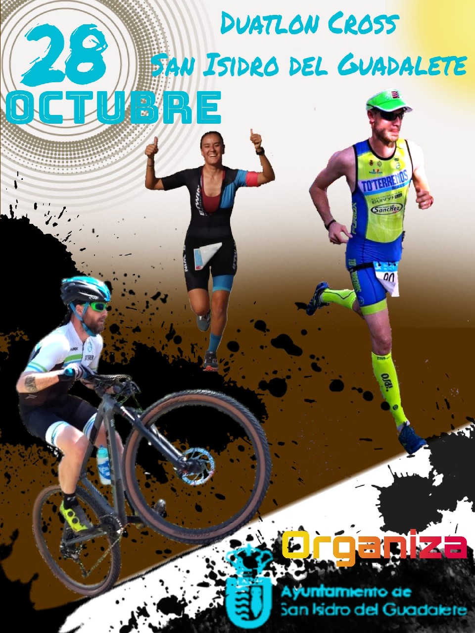 DECLARACION DE RESPONSABILIDAD. • Que conozco y acepto el reglamento del Duatlón Cross popular, que es una competición y se celebrara el 28 de octubre de 2023 con sus medidas COVID-19. • Que mi dorsal es personal e intransferible y no podrá ser usado por otro participante en mi lugar. • Que mi estado físico general me permite participar sin riesgo para mi salud en esta prueba y aceptando los riesgos inherentes a la participación de dicha prueba abierta al tráfico. • Que declaro conocer que la prueba discurre por vías publicas abiertas al tráfico. • Que acepto los riesgos inherentes a la participación de dicha prueba abierta al tráfico. • Que eximo a la E.L.A San Isidro del Guadalete y/o a cualquier persona física o jurídica vinculada con la organización de la prueba, de cualquier daño físico o material, así como de las responsabilidades derivadas de cualquier accidente causado por motivo de hechos de la circulación como por accidentes deportivos. • Que participo voluntariamente bajo mi propia responsabilidad y eximo a los anteriormente señalados de cualquier perjuicio que, por motivos de salud, pudieran derivarse de mi participación en esta prueba deportiva, asumiendo personalmente el riesgo inherente para la salud que supone el esfuerzo físico requerido para la participación en esta prueba. • Que autorizo a la organización a utilizar cualquier fotografía, grabación, o filmación que tome siempre que este exclusivamente relacionado con mi participación en este evento. En San Isidro del Guadalete a 28 de octubre de 2023 FICHA TECNICA DE LA CARRERA Empresa Organizadora: AYUNTAMIENTO DE SAN ISIDRO DEL GUADALETE • Teléfono de contacto : 956 16 22 90 / 618 03 82 42 • Correo electrónico: • Entidad Colaboradora: AYUNTAMIENTO SAN ISIDRO DEL GUADALETE • . Día de la Prueba: 28/10/2023 • Participantes: Máximo 200. • Plataforma de inscripción: únicamente por la web ( VILLALUENGAVENTURA) • Precio: 10 Euros individual y 20 Euros por pareja el mes de Septiembre y a partir de 1 de Octubre al 20 que se cierren inscripciones 15 individual y 30 la pareja. • Modalidades: Individual y por parejas, en la modalidad de parejas uno tendrá que cubrir la distancia a pie y el otro en bicicleta . • Cada participante recibirá una bolsa conmemorativa de la prueba de regalo. Distancias: ◦ Primer segmento carrera a pie; 5 kmt. ◦ Segmento MTB; 18 kmt (2 vueltas) ◦ Segundo segmento a pie; 3 kmt. E.L.A SAN ISIDRO DEL GUADALETE REGLAMENTO XI DUATLON CROSS “ SAN ISIDRO DEL GUADALETE” 1.- La prueba se acoge al Reglamento de la Federación Española de TRIATLON en todo lo no previsto en el presente Reglamento. Todos los participantes se obligan a su cumplimiento, así como a suscribir, en el momento de la inscripción, una aceptación expresa del Condicionado General de participación. 2.- El equipo medico de la Organización y cualquiera de los Jueces acreditados están autorizados para retirar a cualquier participante, cuando consideren que su integridad física o salud corran peligro. 3.- La prueba esta organizada en 3 segmentos para 2 disciplinas deportivas diferentes: ciclismo de montaña y carrera a pie. 4.- Se establecerán una Zona de Transición (ZT nº1). 5.- A la entrada en boxes, de la ZT nº1, se supervisara exhaustivamente la colocación adecuada de los dorsales y la calidad del material, en especial, el casco homologado y frenos. Sobre estos aspectos la Organización será inflexible, pudiendo impedir la participación en la prueba a cualquier participante. 6.- Esta prohibido recibir cualquier tipo de ayuda de terceros ajenos a la organización. 7.- Las reclamaciones deberán presentarse a la Organización, precisamente ante el Juez General de la prueba, antes de que transcurra media hora desde la finalización de la prueba. 8.- Límite de tiempo para completar la prueba es de 2.30h. horas. 9.- El coche escoba retirara el dorsal del participante cuando se entienda inviable cumplir el tiempo de paso. Si el participante decide continuar lo hará bajo su total responsabilidad y fuera de la competición de la prueba. 10.- La Organización se reserva el derecho de modificar el presente Reglamento antes de la celebración de la prueba, así como la no realización de la misma por motivos ajenos a esta, de todo lo cual se informara a los inscritos con suficiente antelación. • DESARROLLO DE LA PRUEBA 1.-Las distancias a recorrer son: a- Segmento 1 (carrera a pie): 5 kilómetros. b- Segmento 2 (ciclismo): 18 kilómetros. c- Segmento 3 (carrera a pie): 3 kilómetros tanto para modalidad individual como equipos ( Parejas) 2.- La prueba tendrá lugar el día 28 de octubre 2023 sábado y dará comienzo a las 16.30h en la modalidad absoluta y equipos. Los boxes estarán accesibles desde las 15.30 h. 3.- Los boxes estarán situados: en la C/El Torno en San Isidro del Guadalete junto al arco de meta. Durante el desarrollo de la prueba nadie ajeno a la prueba tendrá acceso a ellos. • CATEGORIAS Y PREMIOS 1.- Las categorías son: Masculino y Femenino. En todas ellas habrá trofeos para los tres primeros clasificados, independientemente del nº de participantes inscritos y una bolsa conmemorativa del evento que se entregará junto con el dorsal el día de la prueba. Categorías: (MASCULINA/FEMENINA) SENIOR (16-19) TROFEOS A LOS TRES PRIMEROS (M/F) M-20 (20-29) TROFEOS A LOS TRES PRIMEROS (M/F) M-30 (30-39) TROFEOS A LOS TRES PRIMEROS (M/F) M-40 (40+49) TROFEOS A LOS TRES PRIMEROS (M/F) M-50 (50-59) TROFEOS A LOS TRES PRIMEROS (M/F) M-60 (60+) TROFEOS A LOS TRES PRIMEROS (M/F) -Parejas Absolutas y parejas mixtas. (de cualquier edad y sexo) 2.- Premio en metálico de 100€ al primer clasificado de la general (M/F) • AVITUALLAMIENTO 1.- Se pondrá a disposición del participante un avituallamiento con agua durante la prueba, y a su finalización habrá agua y fruta • MATERIAL 1.- A todos los participantes se les entregaran: un dorsal , un dorsal p