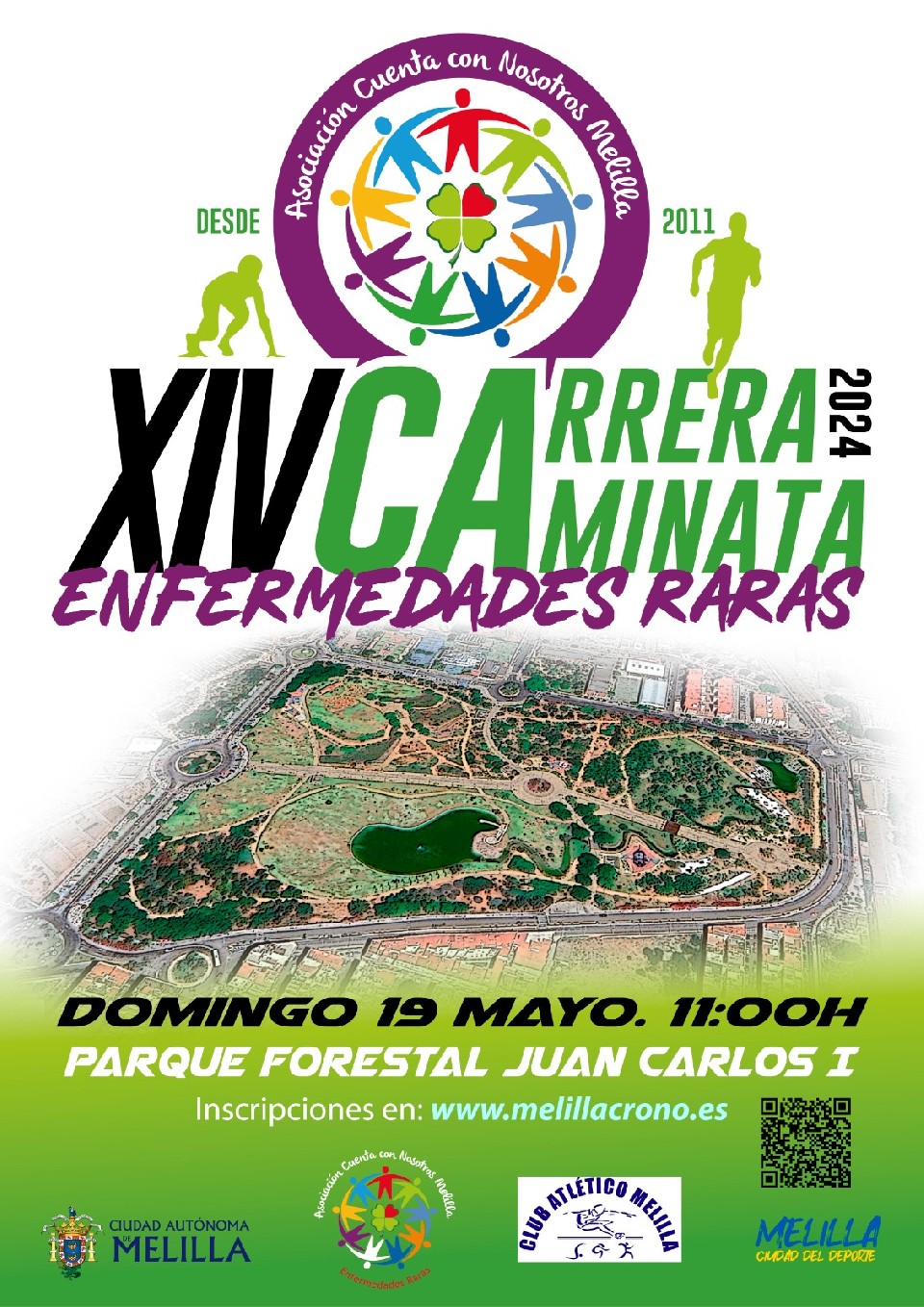 La Asociación Cuenta Con Nosotros de Melilla, perteneciente a la Federación Española De Enfermedades Raras (FEDER), con la colaboración deportiva del Club Atlético Melilla y el patrocinio de diferentes Consejería dela Ciudad Autónoma, organiza la XIV Carrera-Caminata por las Enfermedades Raras en Melilla el Domingo 19 de mayo de 2024, a las 11:00 horas, en el en el Parque Forestal de la Granja Agrícola Juan Carlos I., con el objetivo de concienciar e informar a los ciudadanos sobre las denominadas Enfermedades Raras.
