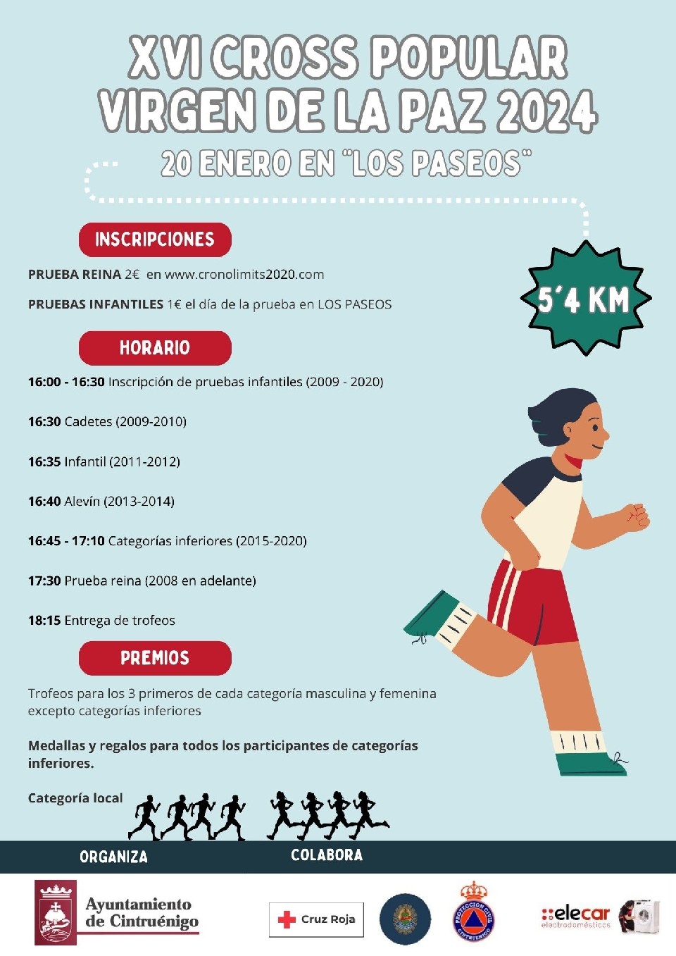 Inscripciones a la carreras infantiles de forma presencial a partir de las 15:30 horas en Los Paseos.