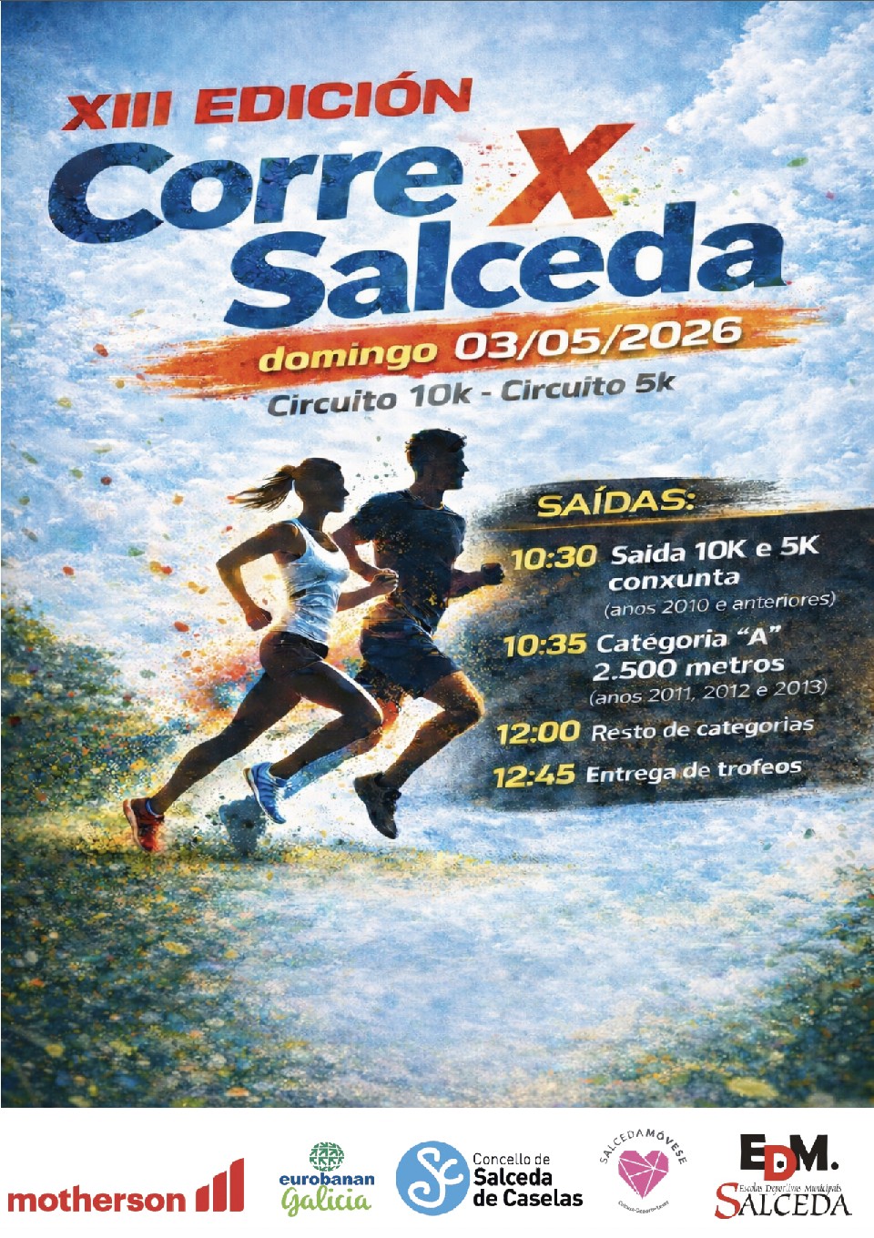 - Será el sábado 2 de mayo de 10:30h a 13h y de 16:30h a 19:00h en el Pabellón Municipal de Deportes de Salceda y el domingo 3 de mayo en el lugar habilitado en la Plaza del Ayuntamiento de Salceda de Caselas hasta 30 min antes de cada carrera.