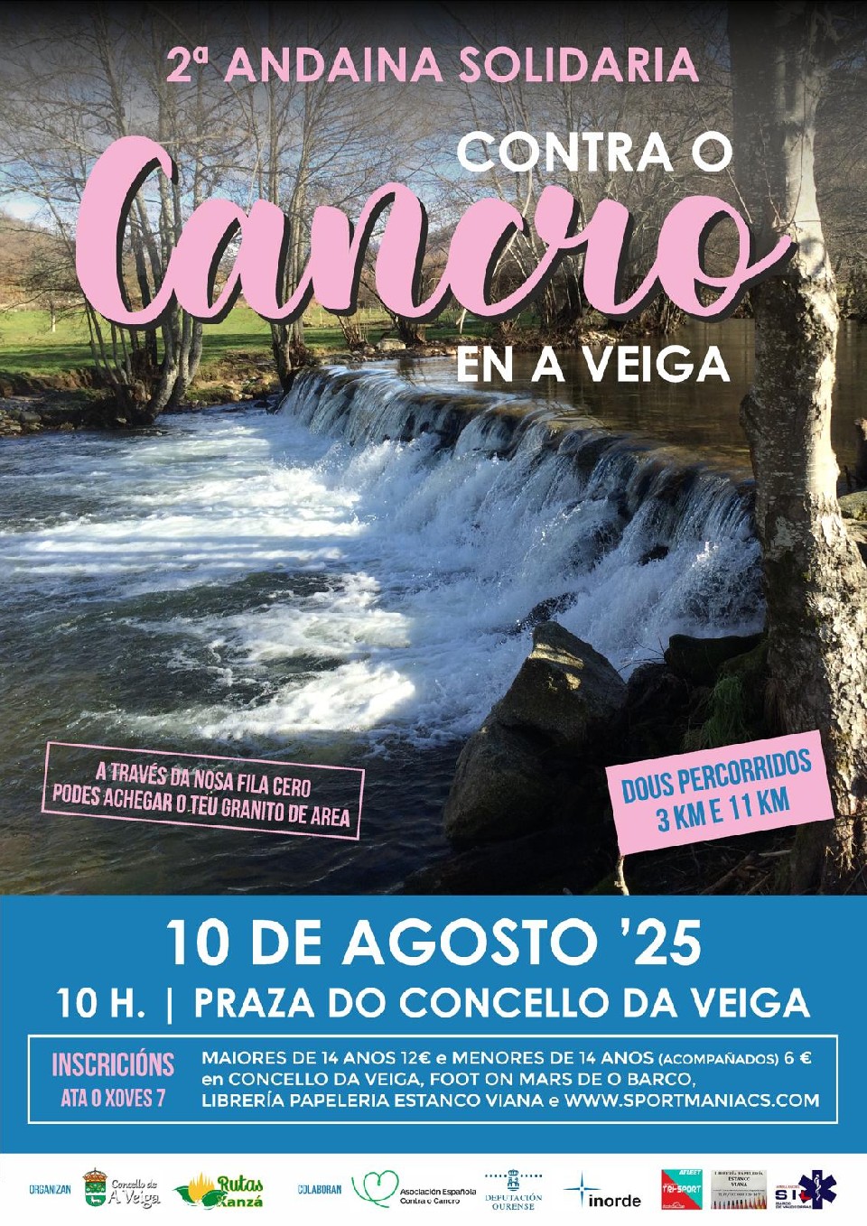 La empresa Valdeorras Turismo S.L. en colaboración con el concello de A Veiga organiza el evento solicario denominado II ANDAINA SOLIDARIA CONTRA O CANCRO, que se desarrollará el próximo día 10 de agosto de 2025 en la localidad de A Veiga (Ourense).