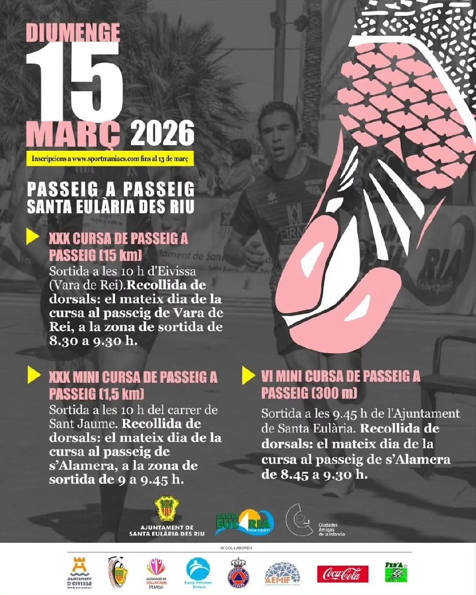2. La organización dispondrá de un servicio de bus a las 8.30 de Santa Eulalia a Ibiza y a las 13.00 también de Santa Eulalia a Ibiza. Es obligatorio inscribirse para poder utilizar este servicio. Es gratuito.