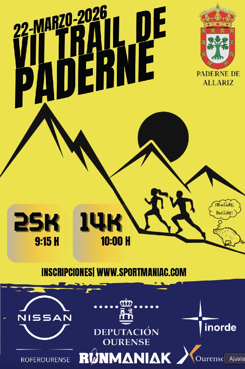 - A saída e a chegada será no Polideportivo de Paderne de Allariz. A saída para o Trail 25KM será as 9.15h e a do Trail15KM as 10h