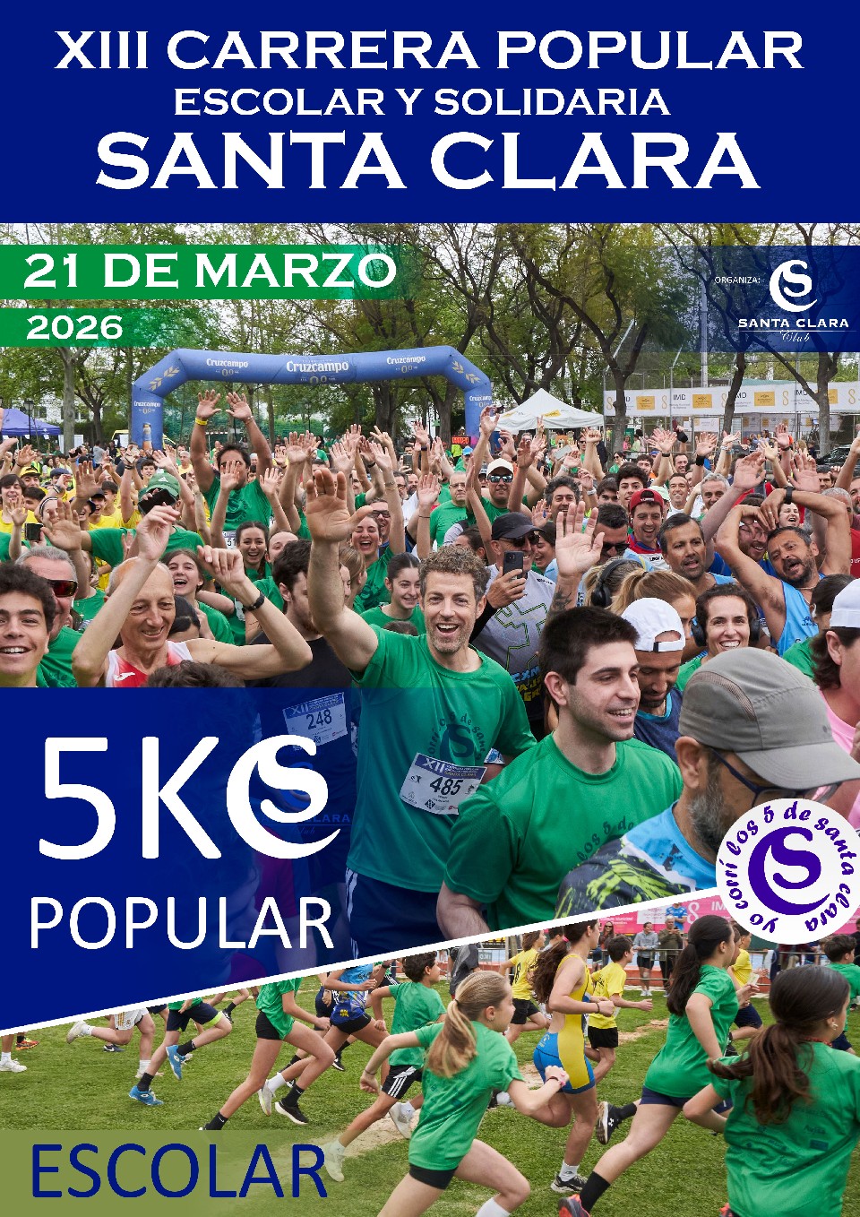 2.- Las inscripciones podrán realizarse desde el 20 de febrero hasta el 18 de marzo, vía web www.yomurycronometraje.com, con la única excepción de las inscripciones colectivas de los colegios y a los socios del Club Santa Clara, que podrán ser presenciales o en el enlace directo en la web del club www.clubsantaclara.es. Teléfono de información 954256479-954516476. El precio de la inscripción es 5 € para categorías peque, prebenjamín, benjamín, alevín, infantil y cadete, y de 9 € para sénior y máster.
