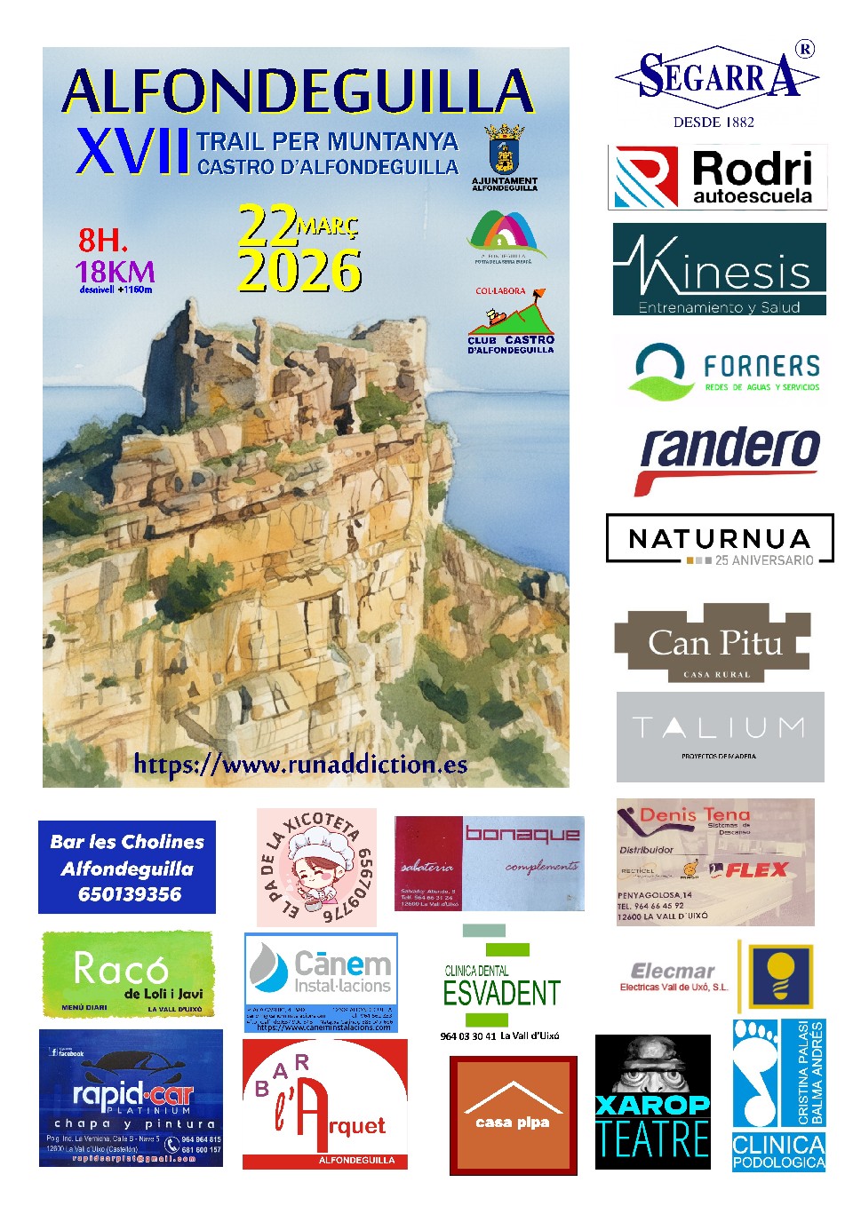 LA PROVA ESTA ORGANITZADA PER L’AJUNTAMENT D’ALFONDEGUILLA AMB LA COL.LABORACIÓ DEL CLUB DE MUNTANYA CASTRO D’ALFONDEGUILLA I L’ASSESSORAMENT DE RUN ADDICTION.