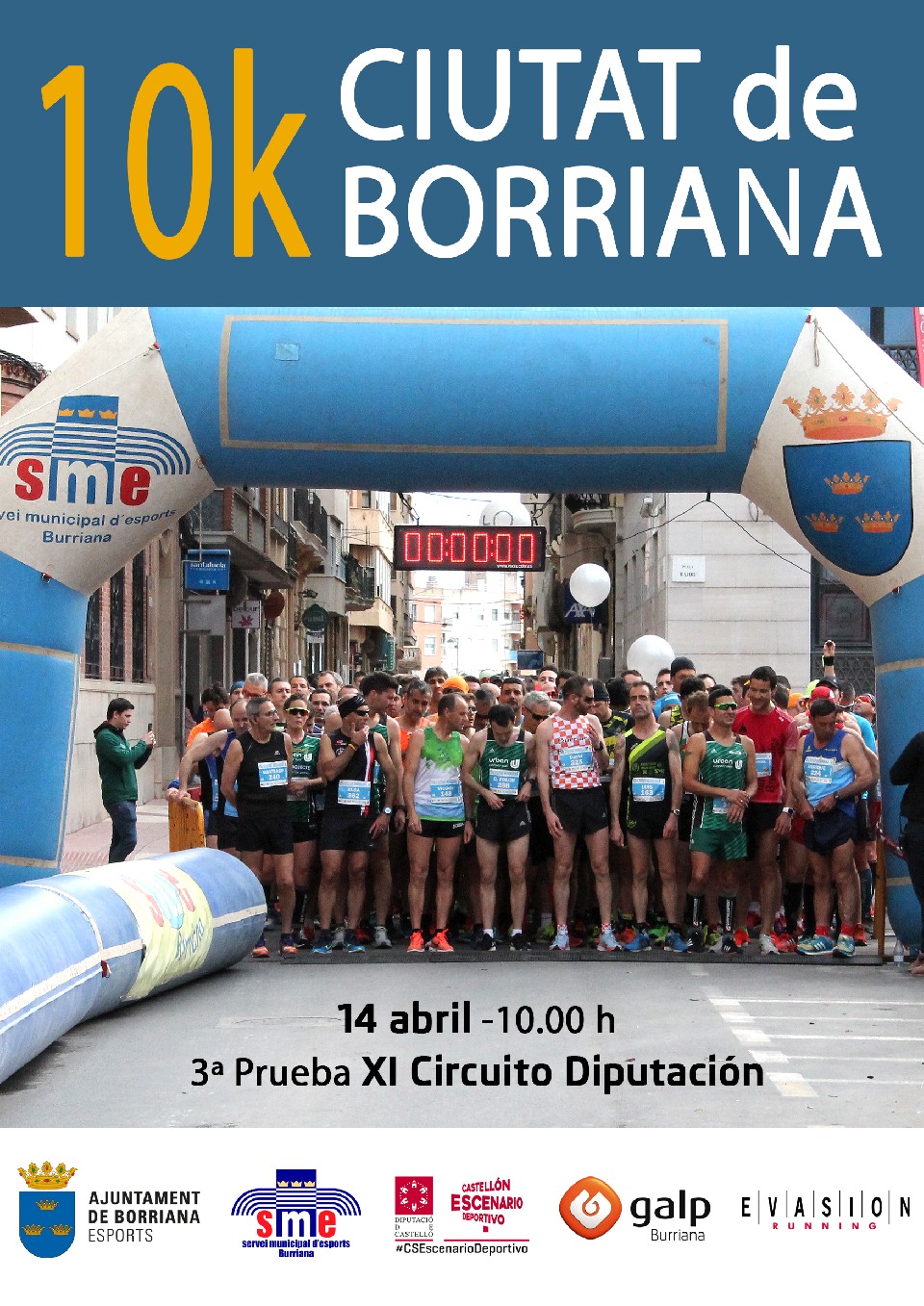 El Servei Municipal d'Esports de Borriana con el patrocinio del Magnífic Ajuntament de Borriana y el asesorameinto técnico de Runday organizan el evento 10K CIUTAT DE BORRIANA, que tendrá lugar el Domingo 14 de abril, a las 10.00 horas.