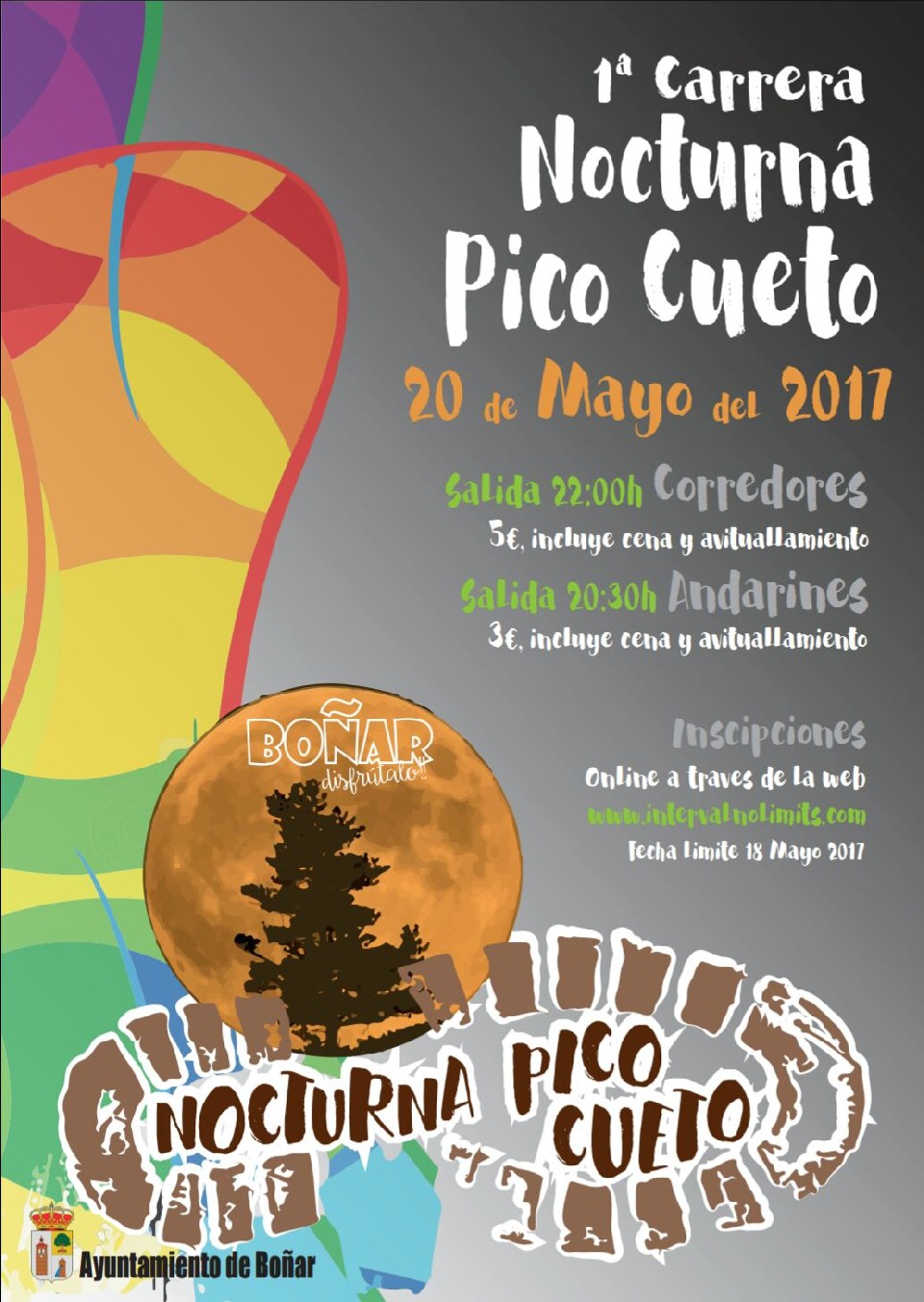 La carrera “Nocturna Pico Cueto” es una prueba desarrollada por montaña, que se celebrará el día 20 de Mayo de 2017 con salida y meta en la localidad leonesa de Boñar y desarrollada sobre una distancia de 14Km, a una sola vuelta y con 1400m de desnivel acumulado.