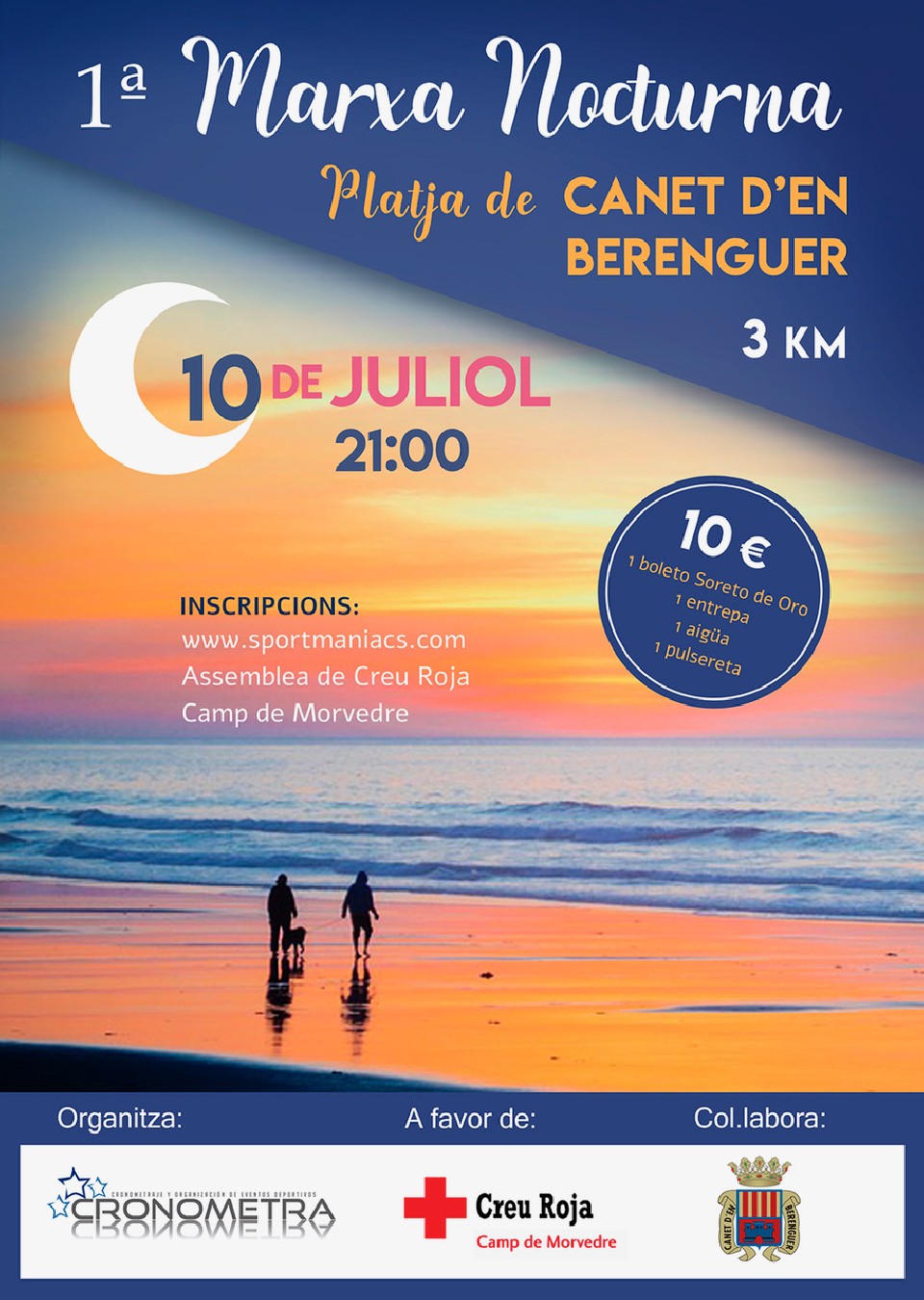 Se realizara el dia 10 de julio en la plaza Els Peixcadors de Canet d´en Berenguer a las 21h, realizando una marcha de 3km por la orilla de la playa andando.