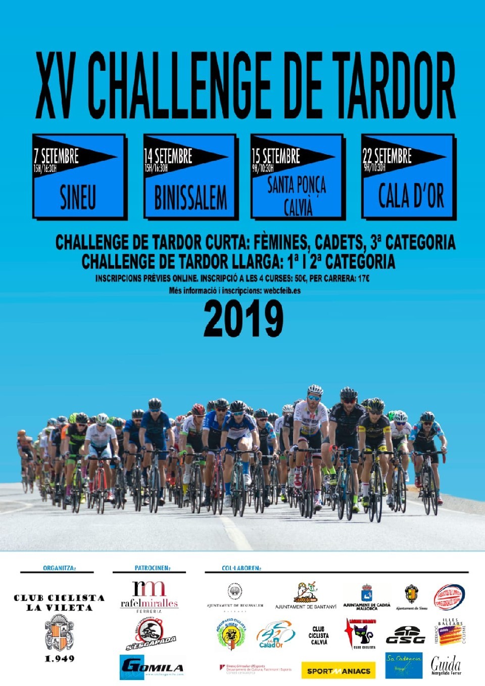 Sailkapenak 2ª Etapa Tardor Llarga. Binissalem 14/09/2019 15:00 84km Sailkapenak ikusi 2ª Etapa Tardor Curta. Binissalem 14/09/2019 15:00 46km Sailkapenak ikusi Kontaktuaren informazioa Antolatzailearekin harremanetan jarri – - Araudia Reglamento.
