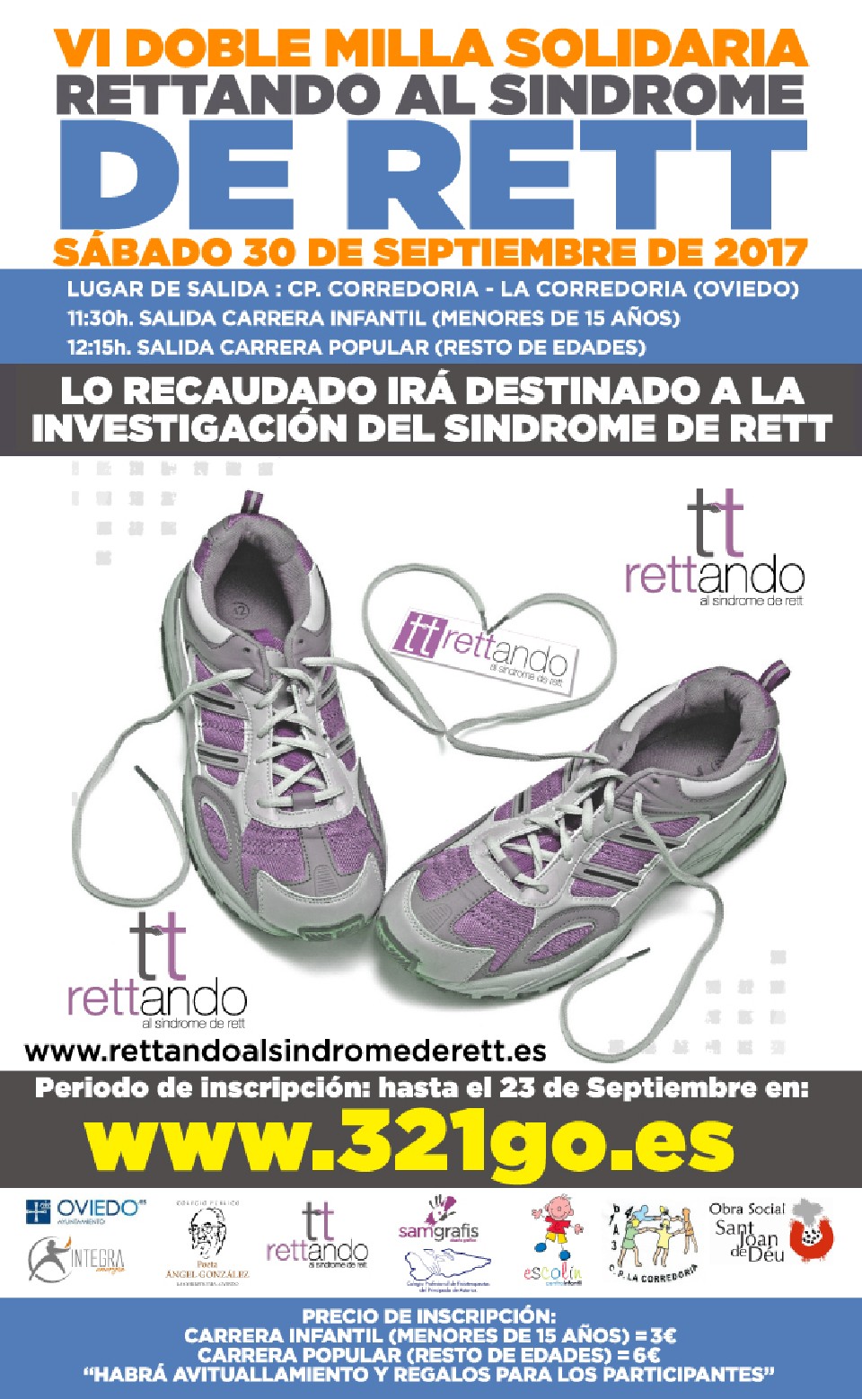 - El C.P. Corredoria, en colaboración con la Asociación sin ánimo de lucro “Rettando al Síndrome de Rett” organizan la 6ª Doble Milla Solidaria Rettando al Síndrome de Rett. Prueba que se disputará el 30 de septiembre de 2017 desde las 11:30h.