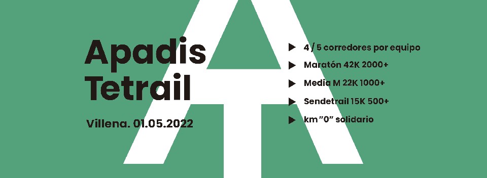 El APADIS TETRAIL 2022, está organizado por la asociación APADIS (Asociación Para la Atención de Personas con Discapacidad de Villena y Comarca), coorganizado por el Club Pumas Trail, y con ayuda de los Ayuntamientos de Villena, Biar, y entidades colaboradoras de la localidad de Villena y la comarca.