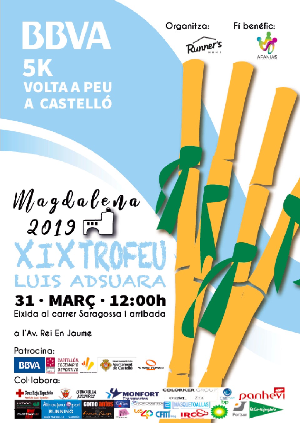 a la Ciutat de Castelló-XIX Trofeu Luis Adsuara, prova atlètica a la que tindrà accés qualsevol persona, sense distinció d’edat, nacionalitat o sexe i que se enmarque un any mes dins de la semana de festes de la Magdalena 2019.