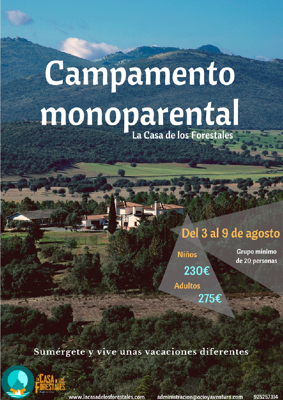 ADULTOS - CAMPAMENTO MONOPARENTAL - Del 3 al 9 de Agosto de 2019
